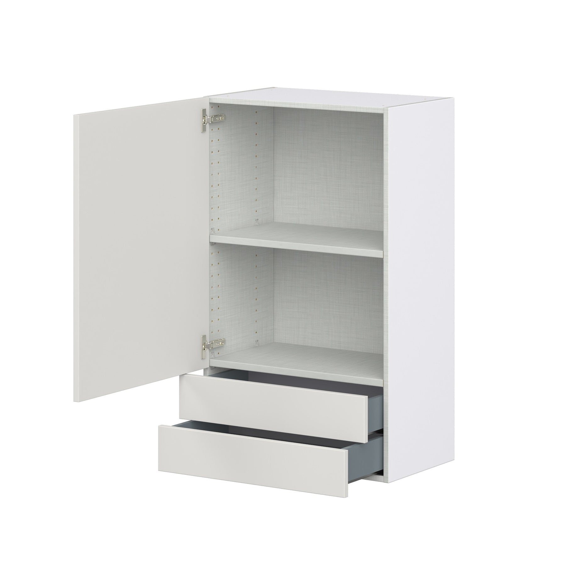 The Hugo&Borg Belcourt Wall Cabinet blends form and function with its chic shaker design and spacious storage. Painted in an elegant light gray, this fully assembled cabinet features soft-close drawers and a durable finish resistant to stains and moisture. Perfect for both contemporary and traditional kitchens, it effortlessly maximizes your storage with full-access construction.