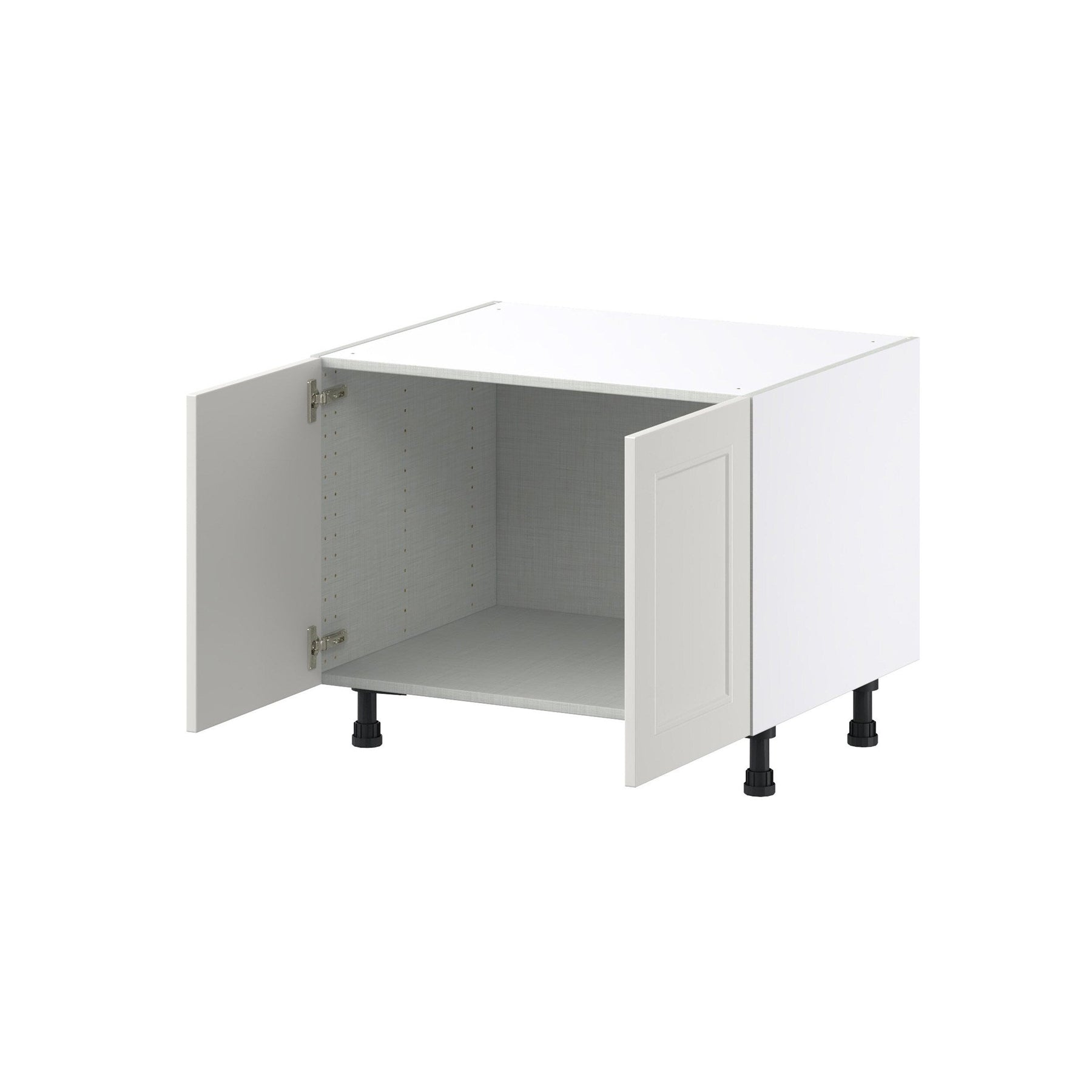 Elevate your kitchen elegance with the Hugo&Borg Belcourt 30-in Sink Base Cabinet, featuring a stunning gray painted finish and recessed Shaker panel design. Fully assembled for your convenience, this cabinet combines a timeless transitional style with superior functionality, perfect for both apron style sinks and modern kitchen aesthetics.