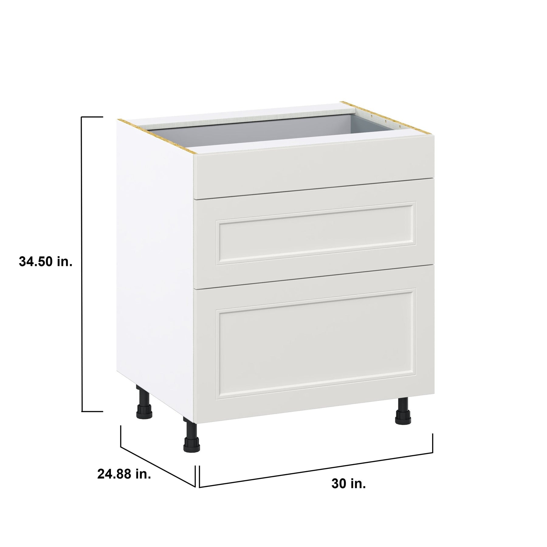 Hugo&Borg Belcourt 30-in W x 34.5-in H x 24-in D Gray Painted 3-Drawer Base Fully Assembled Cabinet (Recessed Panel Style)