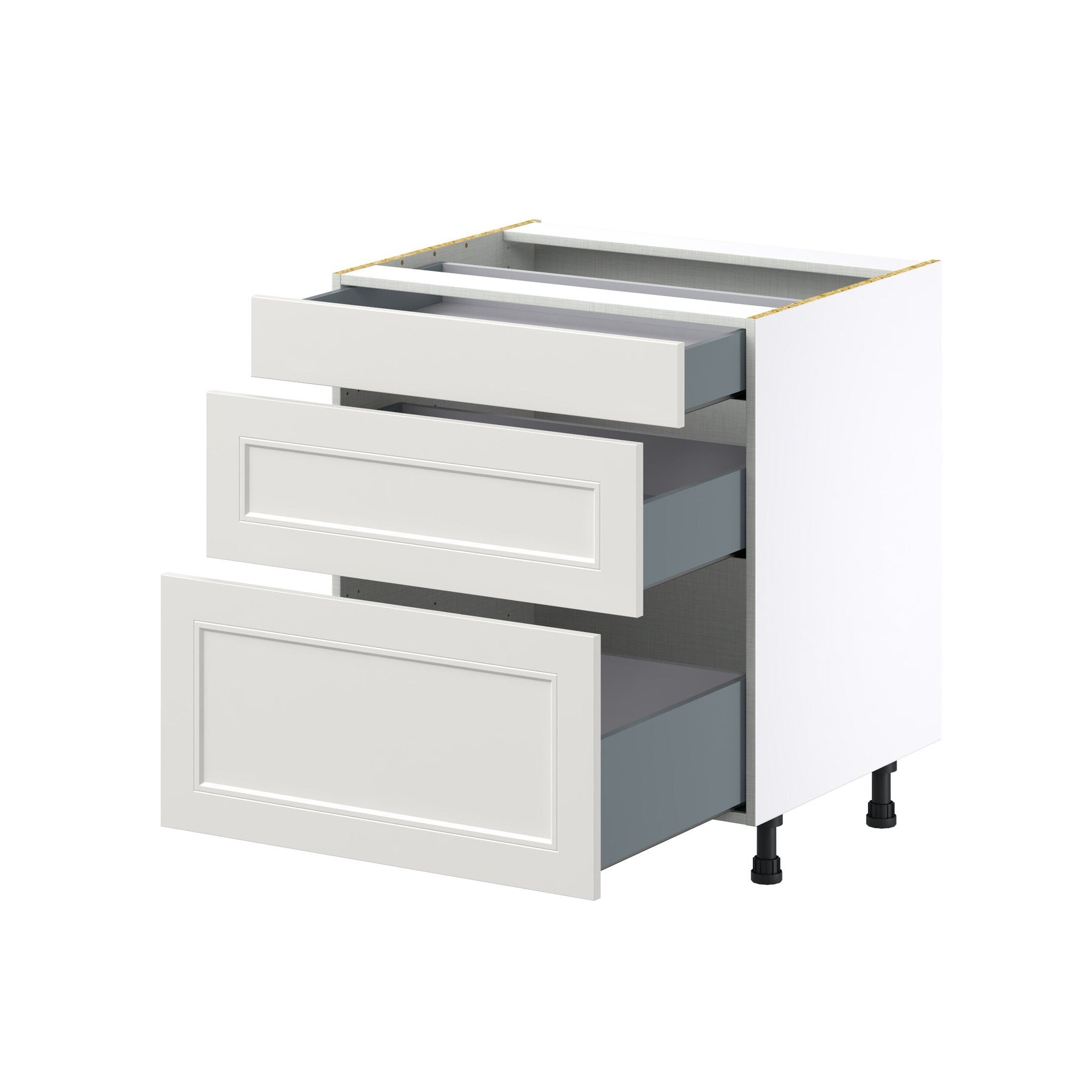 Elevate your kitchen with the Hugo&Borg Belcourt 3-Drawer Base Cabinet, featuring a sophisticated gray finish and recessed panel style. Its fully assembled design offers convenience, while the soft close drawers ensure a seamless and quiet operation. Ideal for modern and transitional spaces, this cabinet combines style with exceptional storage capacity.