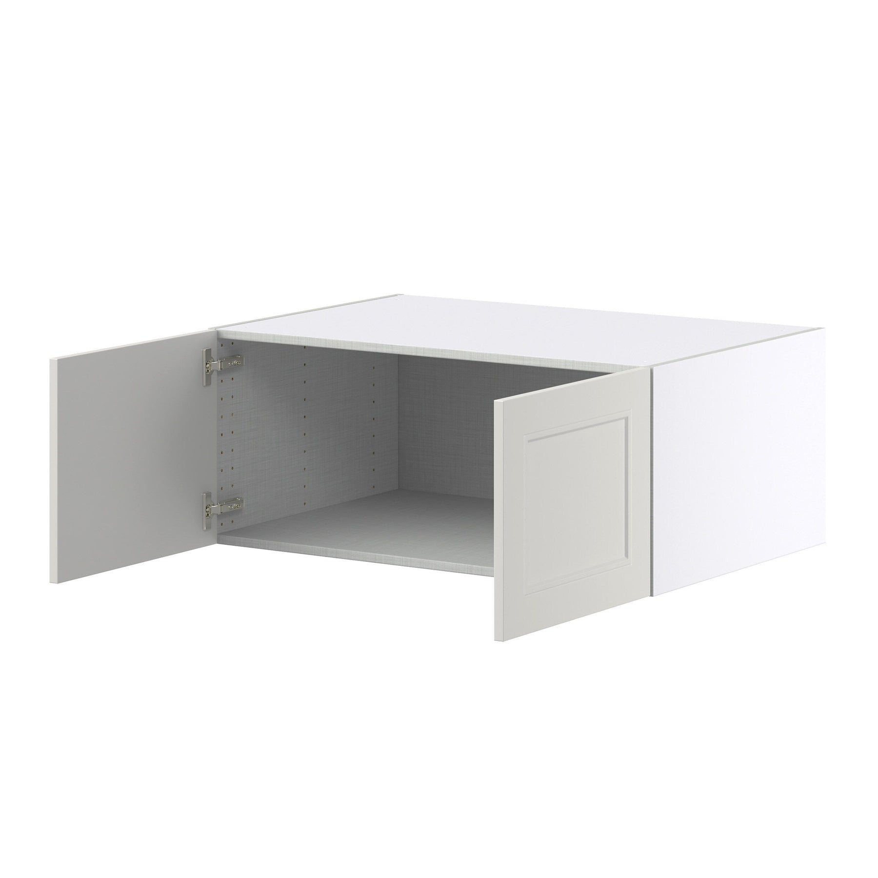 Enhance your kitchen's storage with the Hugo&Borg Belcourt Wall Cabinet, featuring an elegant recessed panel shaker design. This fully assembled, European-style wall cabinet provides 20% more storage space, combining function and style in a painted light gray finish that's easy to maintain.
