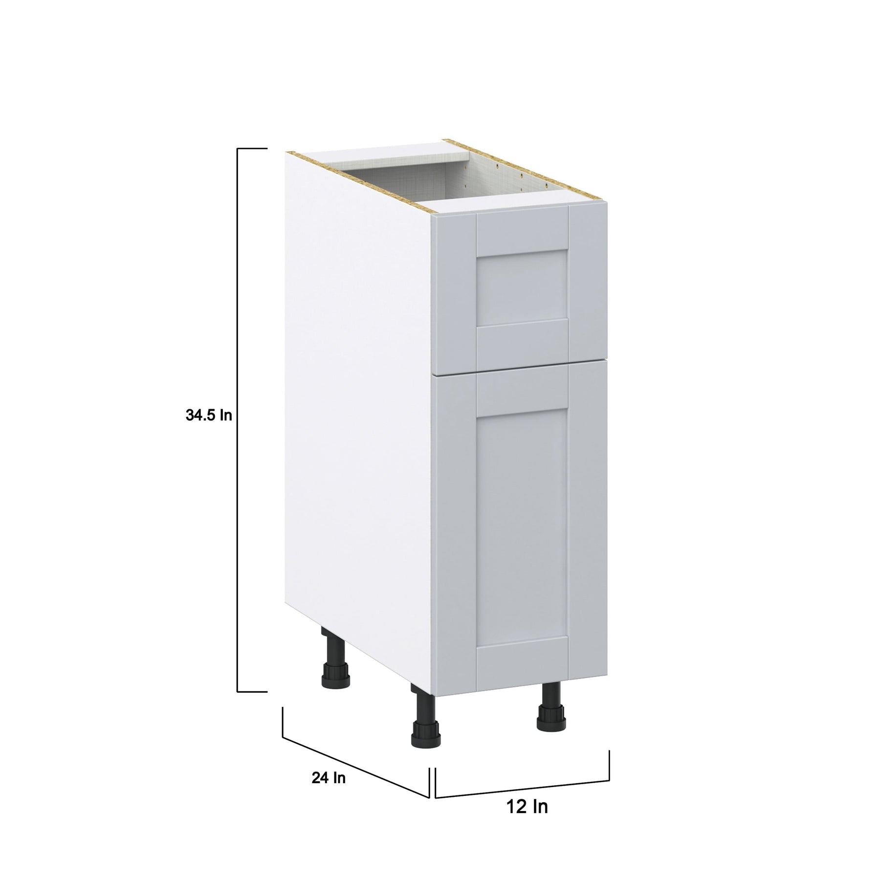 The Hugo&Borg Charlesberg 12" wide base cabinet embodies both form and function with its elegant Shaker-style door made from engineered wood. Fully assembled and featuring a modern light gray finish, this cabinet offers a 20% increase in storage thanks to its frameless design, ensuring maximum use of your space.