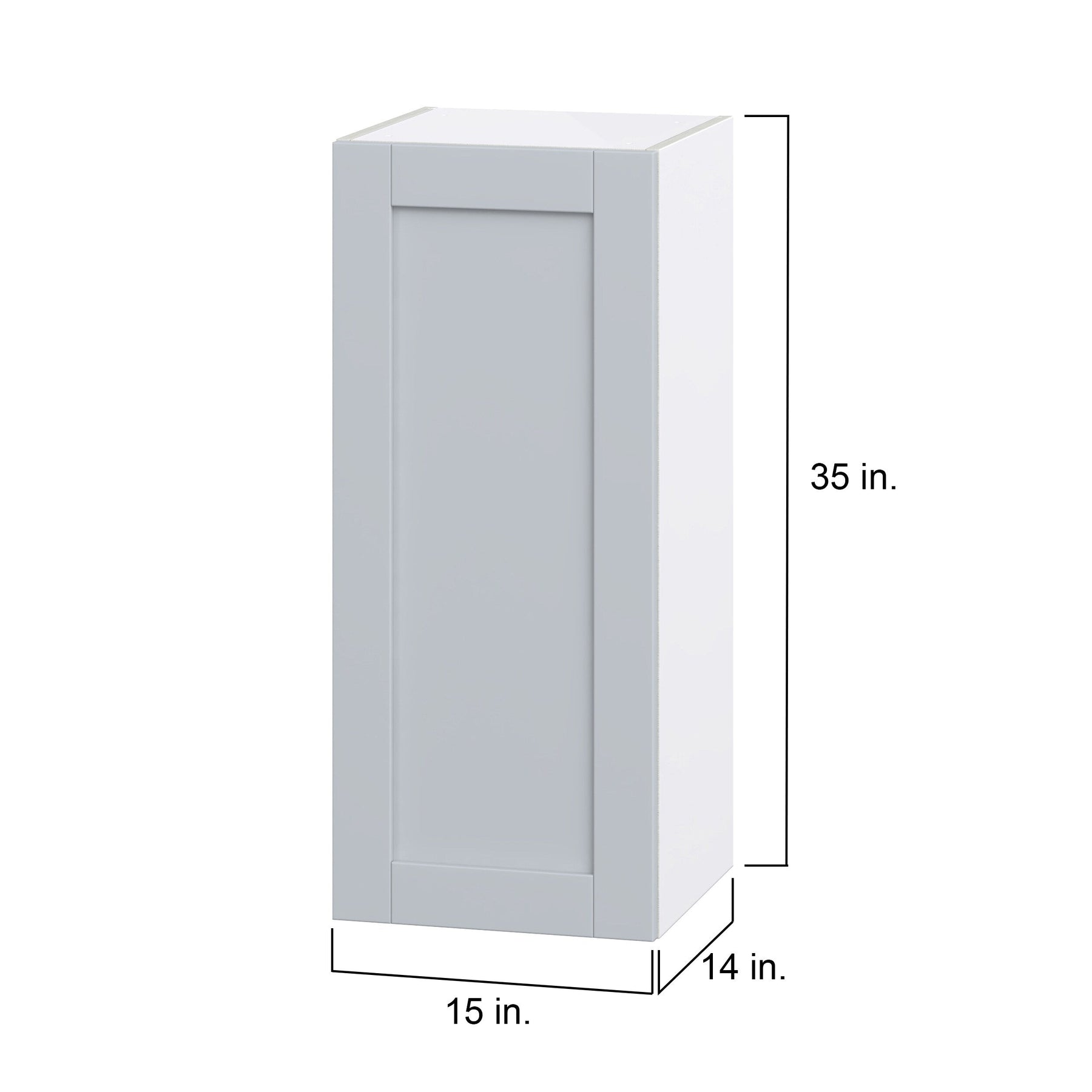 Upgrade your kitchen or bath with the Hugo&Borg Charlesberg 15-in W x 35-in H x 14-in D Gray Wall Cabinet. Its fully assembled design features a classic shaker door style, offering 20% more storage with premium soft-close functionality for a seamless look and feel.