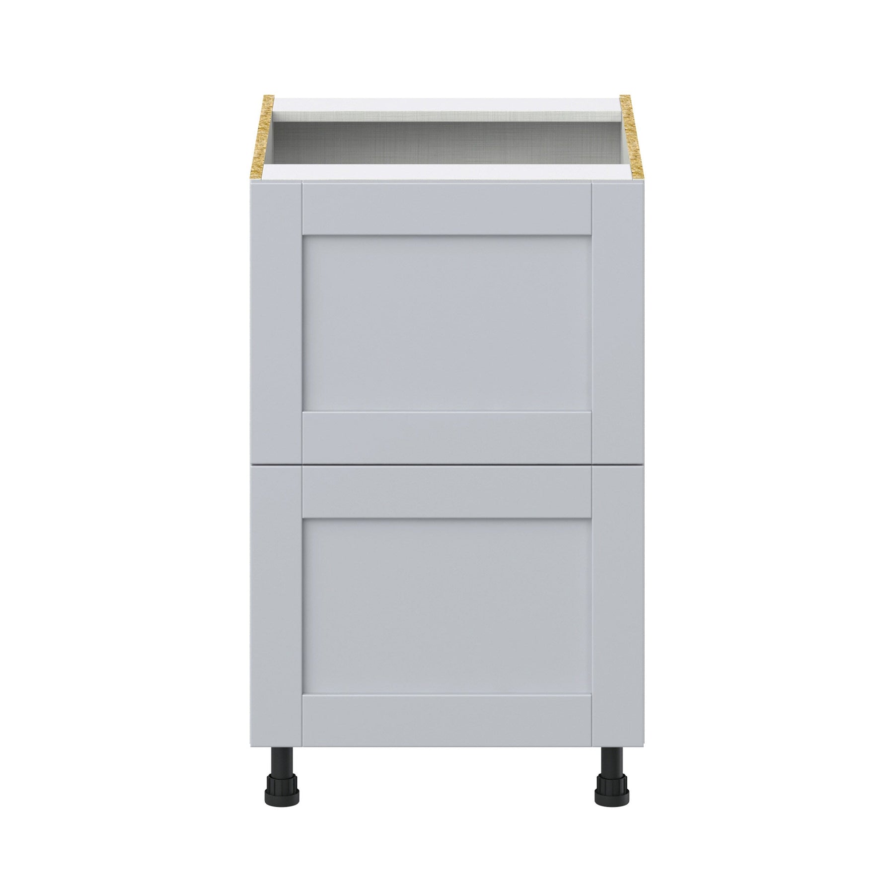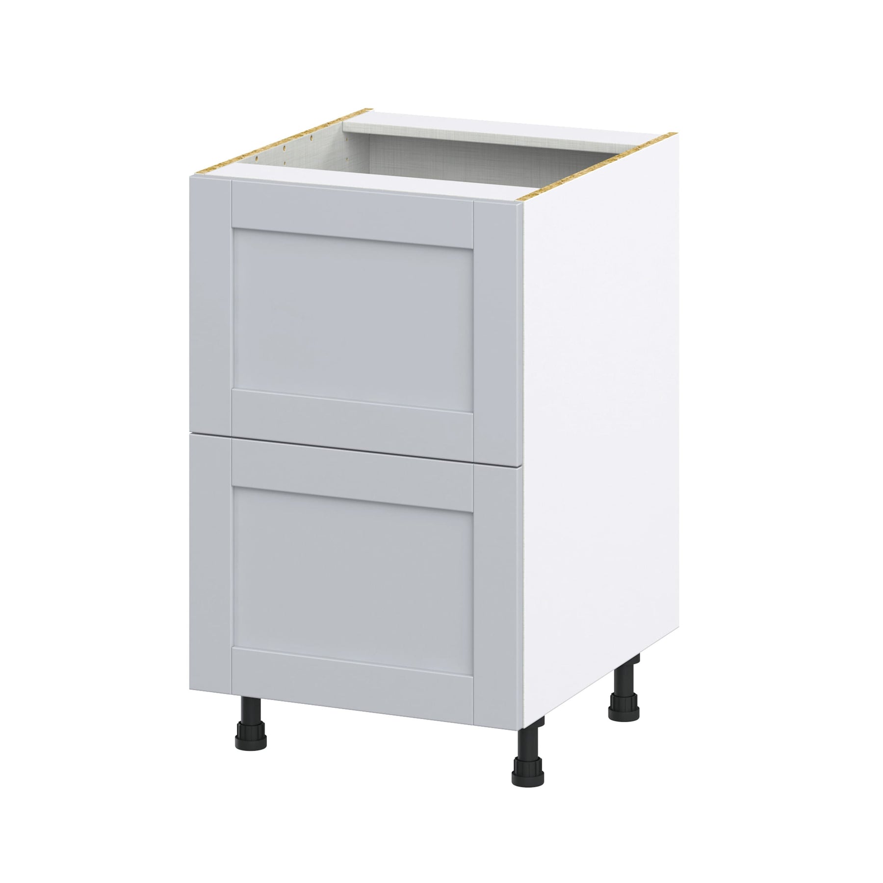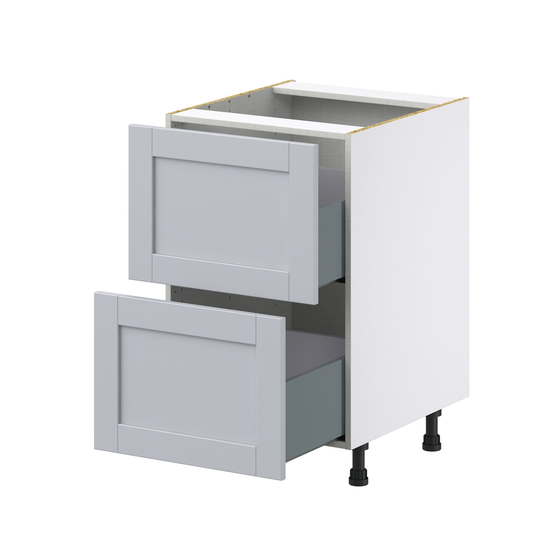 The Hugo&Borg Charlesberg 2-Drawer Base Cabinet in light gray offers a sleek, modern design paired with impressive functionality. This fully assembled, European-style cabinet is designed for optimal storage, featuring full-extension soft-close drawers for a smooth, quiet experience. Built with durable materials, it's an excellent choice for any home project.