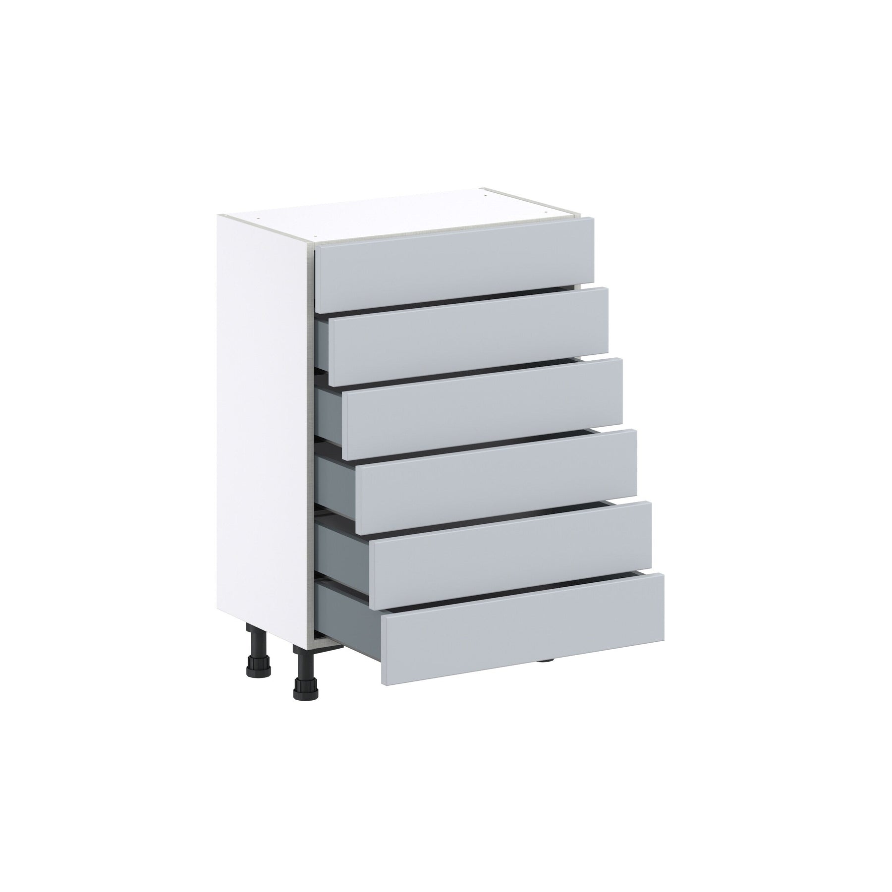 The Hugo&Borg Charlesberg 24-inch 6-Drawer Base Cabinet offers modern style and functionality in a sleek, fully assembled unit. With its full-access construction and soft-close drawers, it's designed for both durability and ease of use, making it a premium choice for enhancing storage solutions in kitchens or other spaces.
