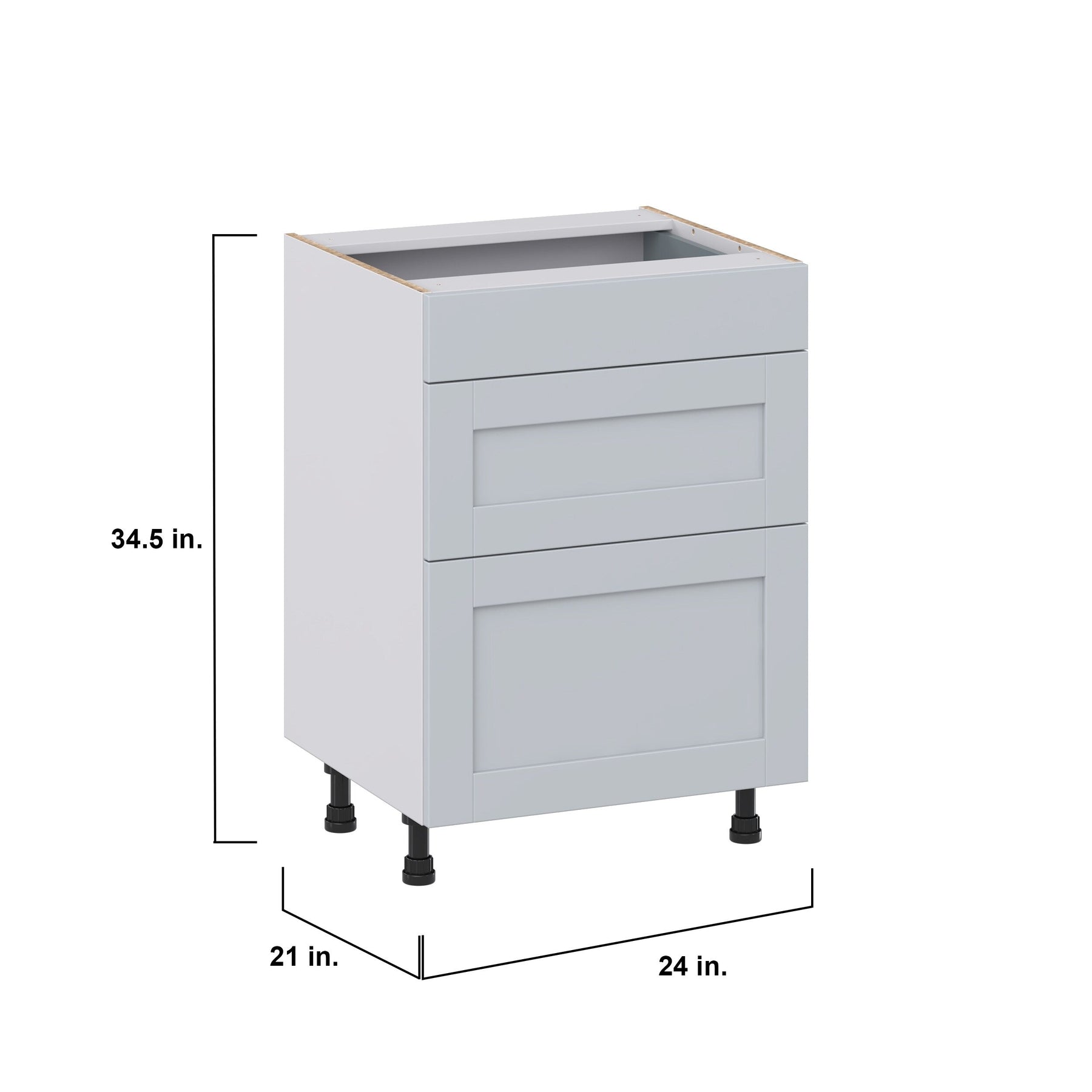 Elevate your cabinetry with the Hugo&Borg Charlesberg 24" 3-Drawer Base Cabinet, exquisitely designed in a stylish light gray laminate for an effortlessly modern look. This fully assembled unit boasts durable construction with soft-close drawers, providing seamless access and a quiet kitchen experience. Perfect for both pros and DIY enthusiasts seeking a hassle-free installation with adjustable legs and superior storage capabilities.