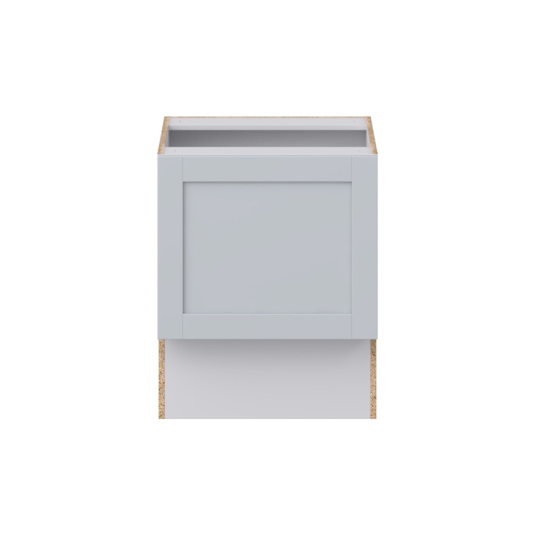 The Hugo&Borg Charlesberg Gray Base Cabinet exemplifies style and practicality with its fully assembled design and elegant shaker door style. With a European frameless structure, this cabinet offers full access and soft-close features for seamless functionality, while its moisture-resistant melamine surface ensures long-lasting use.
