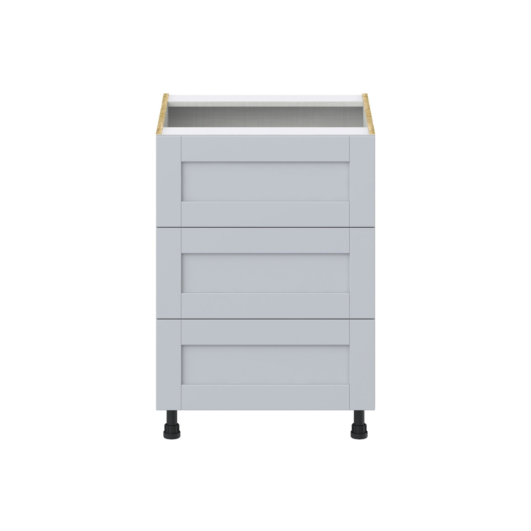 Maximize your storage with the Hugo&Borg Charlesberg 3-Drawer Base Cabinet. This gray, fully assembled cabinet offers a modern linen interior, full-extension soft-close drawers, and adjustable legs for easy leveling – perfect for any home improvement project.