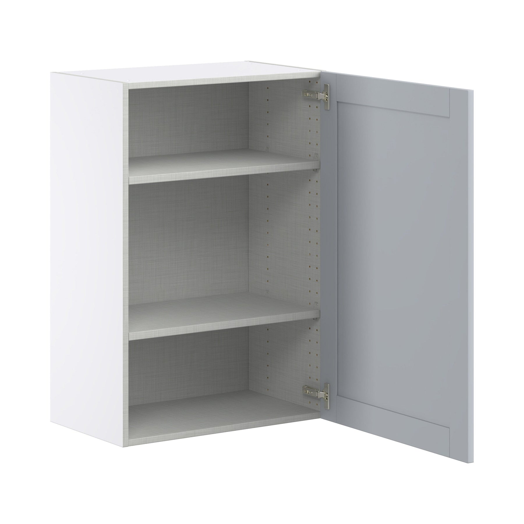 The Hugo&Borg Charlesberg Gray Wall Cabinet offers a sleek, functional addition to any space. With its flat panel shaker door style and premium soft-close feature, this cabinet combines modern elegance with everyday practicality. Fully assembled and constructed for durability, it's a hassle-free upgrade to your kitchen or bathroom.