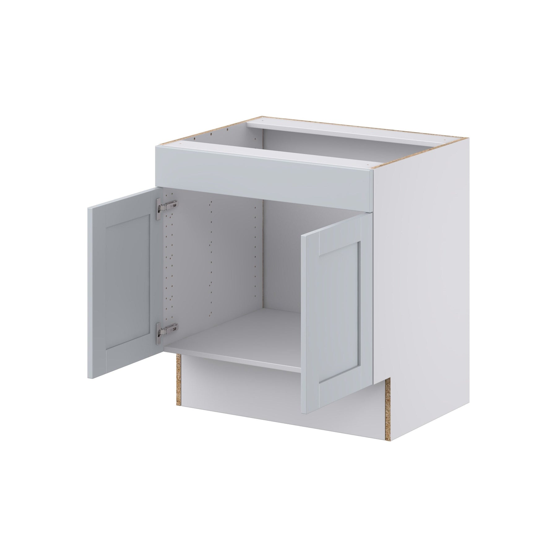 The Hugo&Borg Charlesberg 30-inch Shaker Style Gray Sink Base Cabinet offers professional-grade durability with sleek design. Featuring a recessed panel and modern frameless construction, this cabinet is the perfect choice for enhancing kitchen or bathroom aesthetics while ensuring full accessibility and easy maintenance.