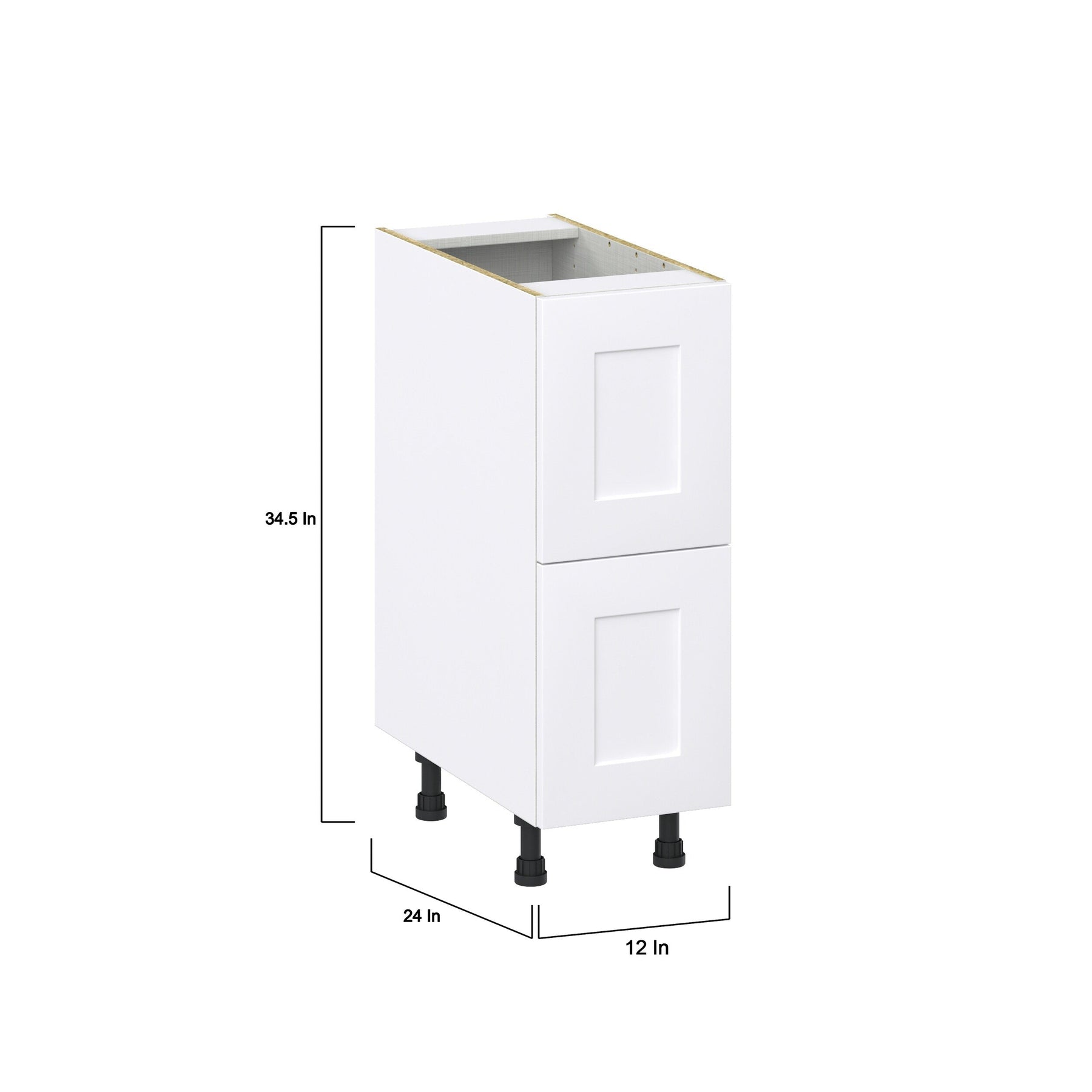 Hugo&Borg Jolie 12-in W x 34.5-in H x 24-in D Warm White 2-Drawer Base Fully Assembled Cabinet (Recessed Panel Style)