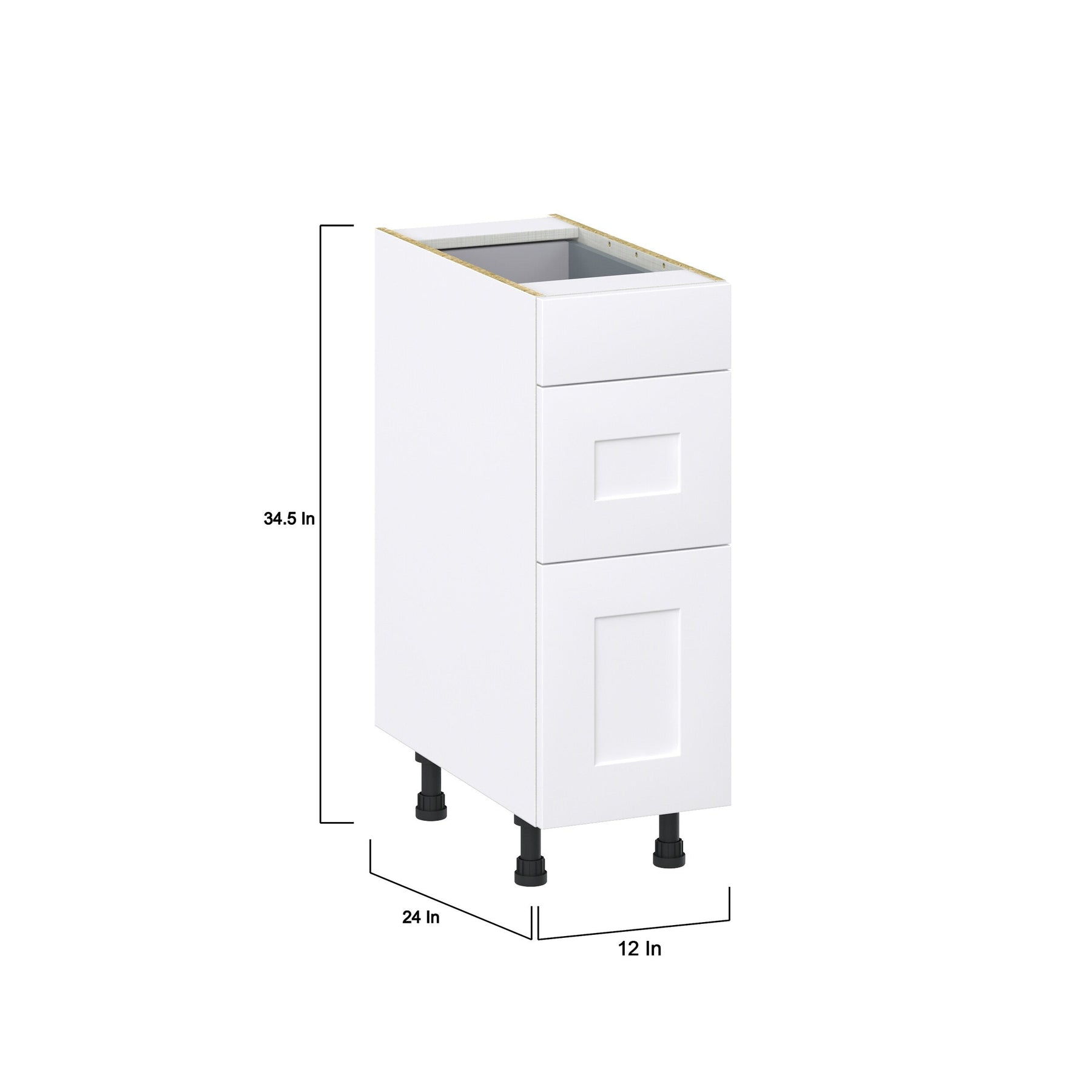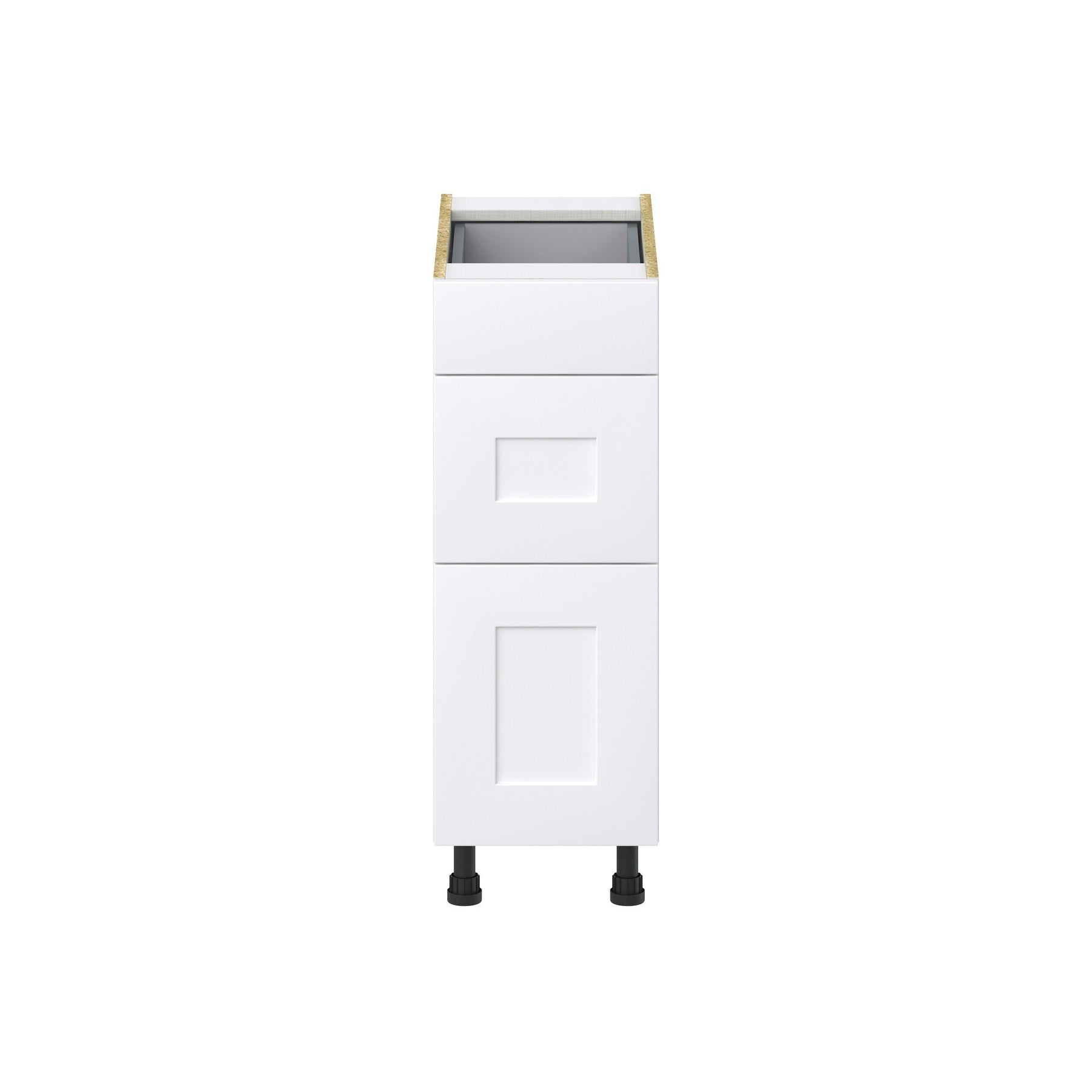 Elevate your storage solutions with the Hugo&Borg Jolie 3-Drawer Base Cabinet. Made with precision and style, this fully assembled cabinet features a warm white recessed panel design, ideal for modern to traditional spaces. Enjoy extra storage with its European-inspired frameless construction, ensuring durability and elegance in every detail.