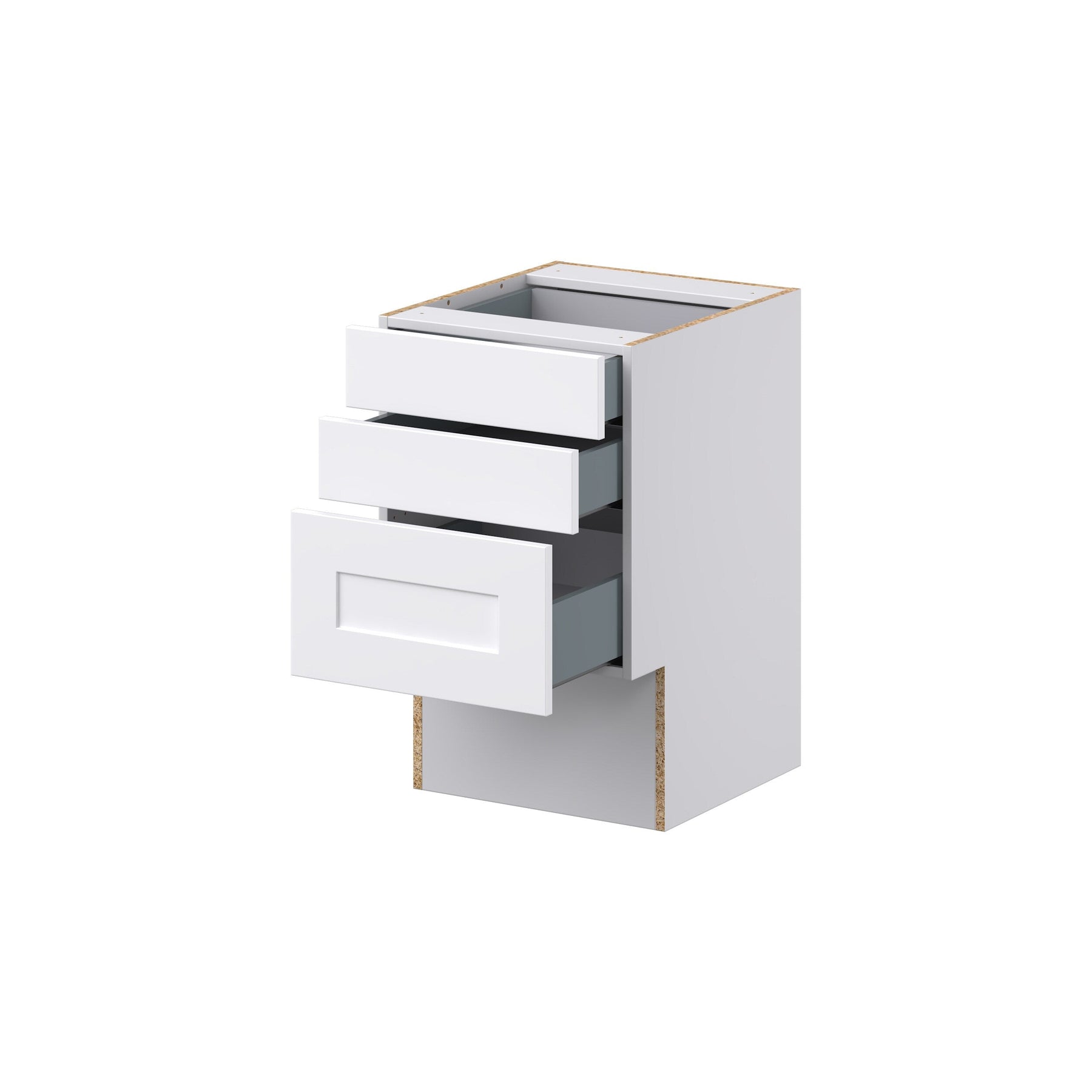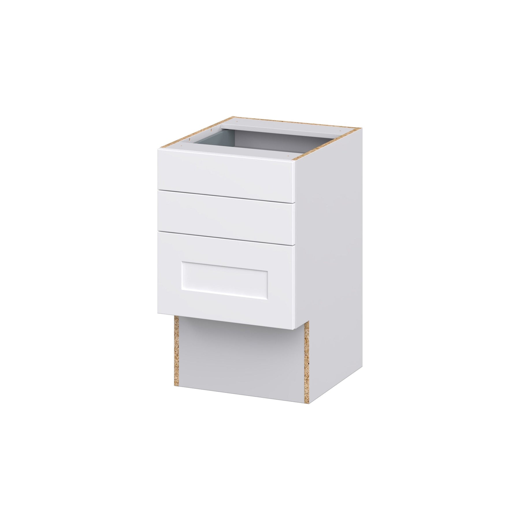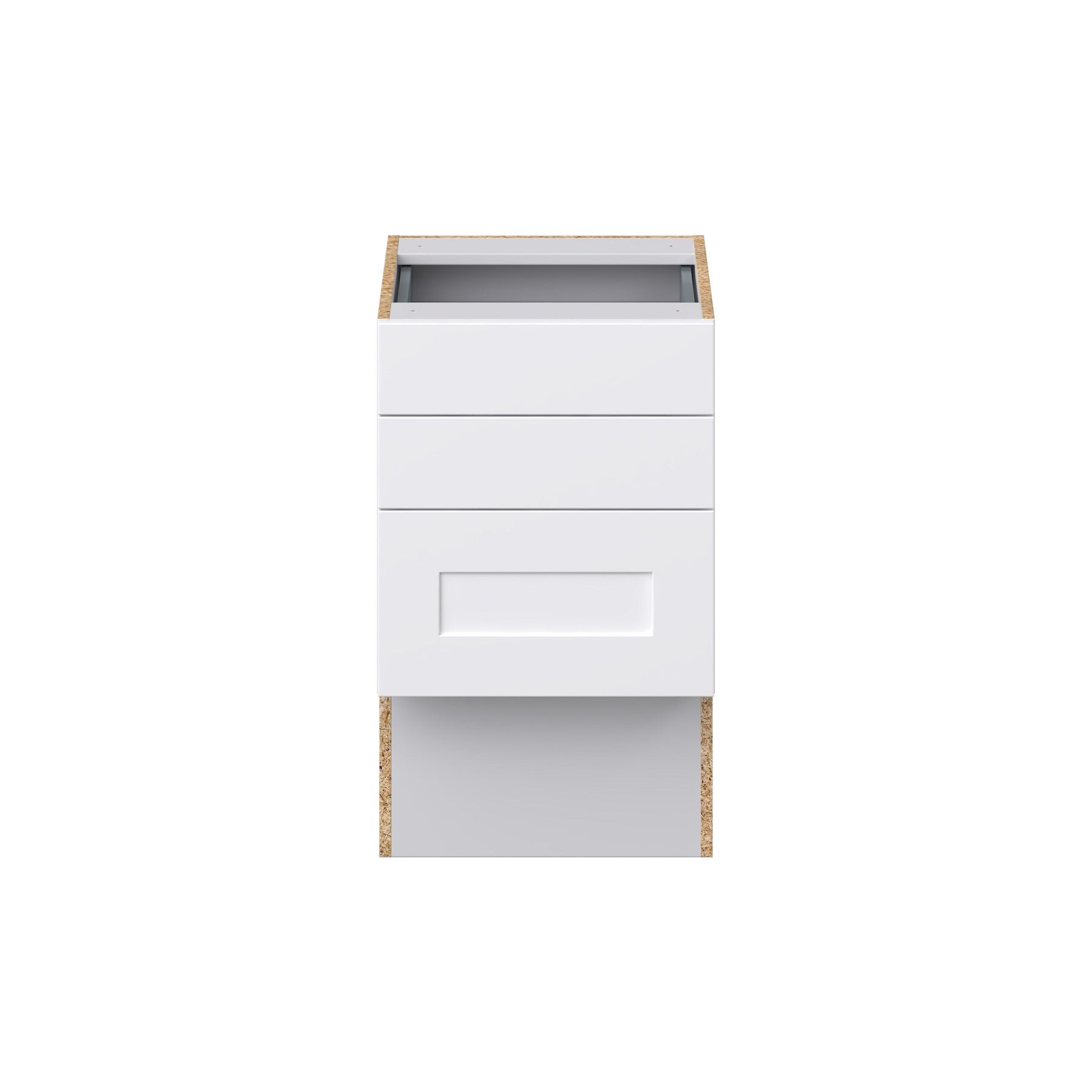 The Hugo&Borg Jolie 3-Drawer Base Cabinet combines elegant design with practical utility. Crafted with a warm white melamine finish, this fully assembled cabinet offers robust storage through its soft-close, full-extension drawers. Designed with European frameless construction, it provides maximum accessibility and durability, ideal for any professional contractor or DIY enthusiast.