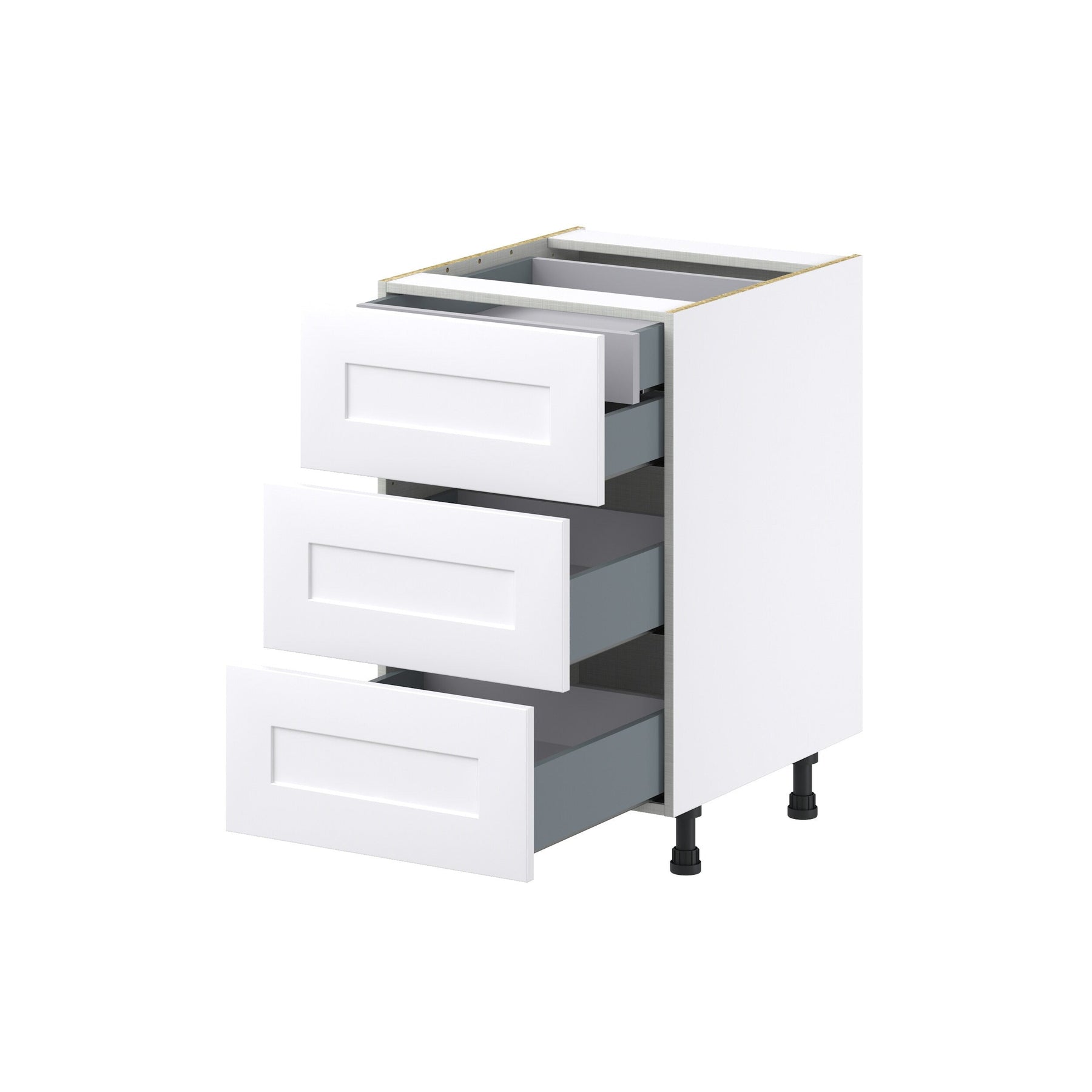 Transform your space with the Hugo&Borg Jolie 4-Drawer Base Cabinet, featuring a sleek warm white finish and frameless design for maximized storage. Built with full-extension, soft-close drawers, this cabinet combines style and function, perfect for both professionals and DIY enthusiasts seeking to upgrade their interiors.