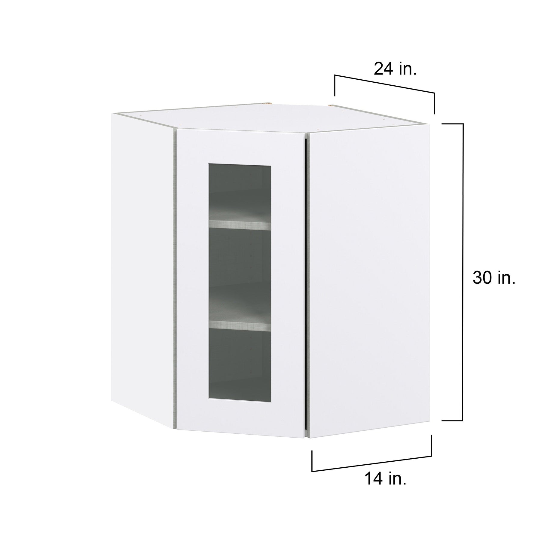Hugo&Borg Jolie 24-in W x 30-in H x 14-in D Warm White Blind Corner Wall Fully Assembled Cabinet (Glass Panel Shaker Style)