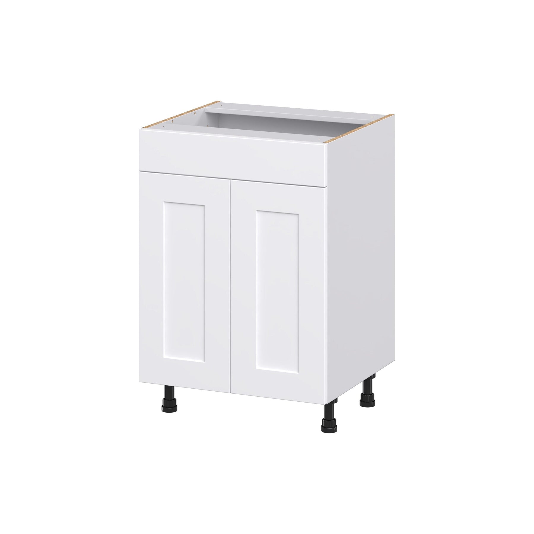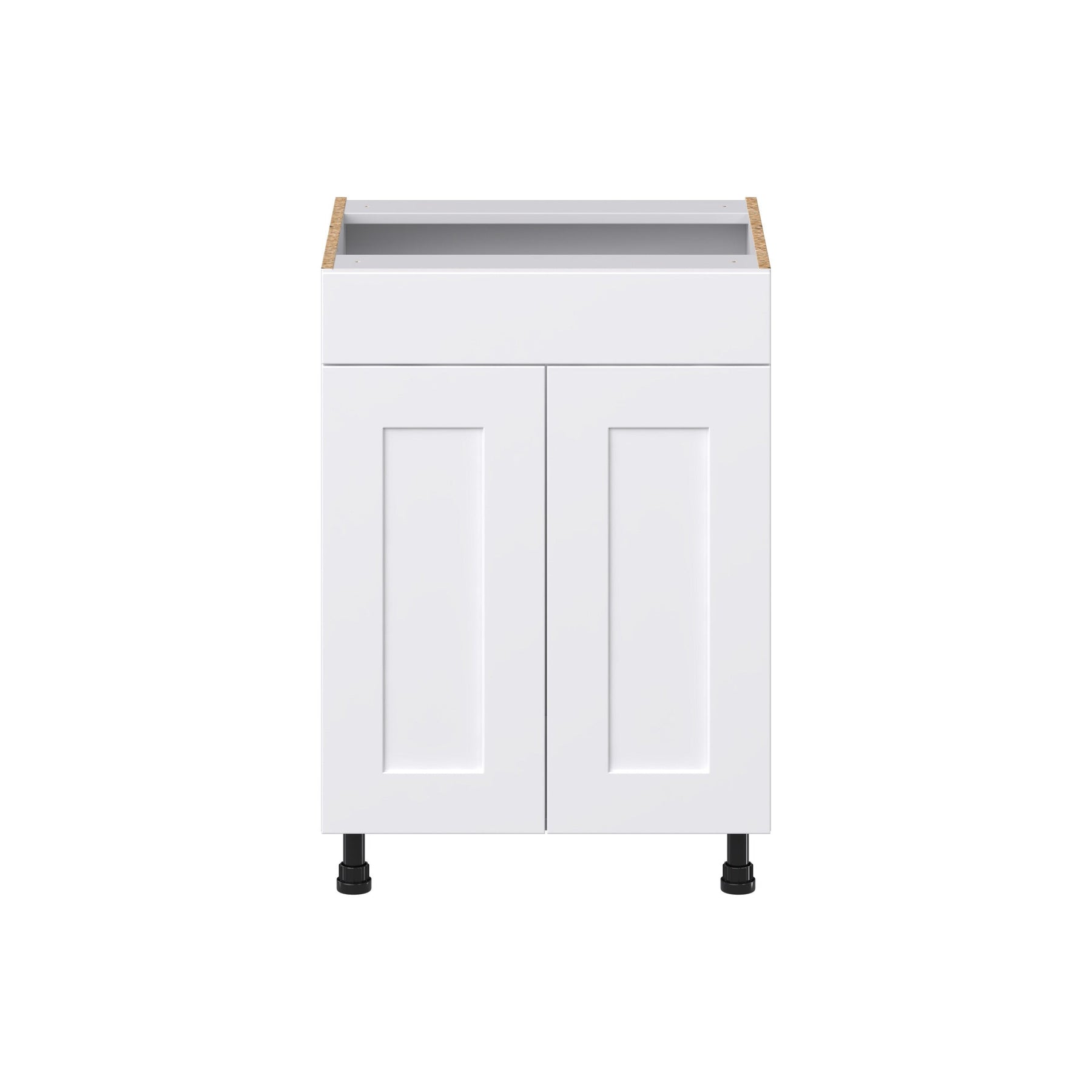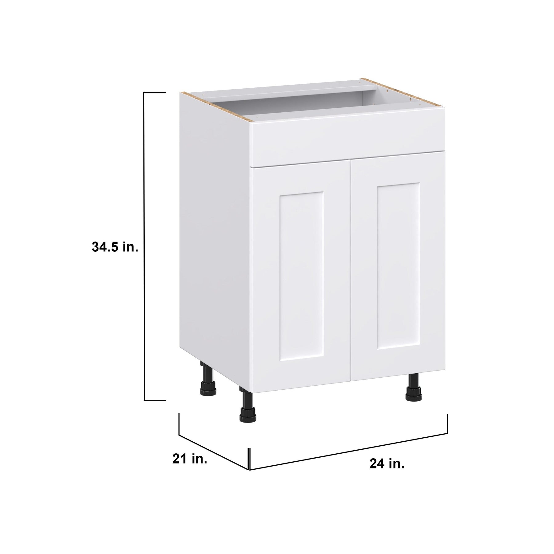 Upgrade your kitchen with the Jolie 24-inch Sink Base Cabinet by Hugo&Borg. This fully assembled cabinet combines European frameless design with traditional shaker style, offering a warm white finish that is both elegant and practical. The melamine surface resists scratches and moisture, ensuring long-lasting beauty and functionality.