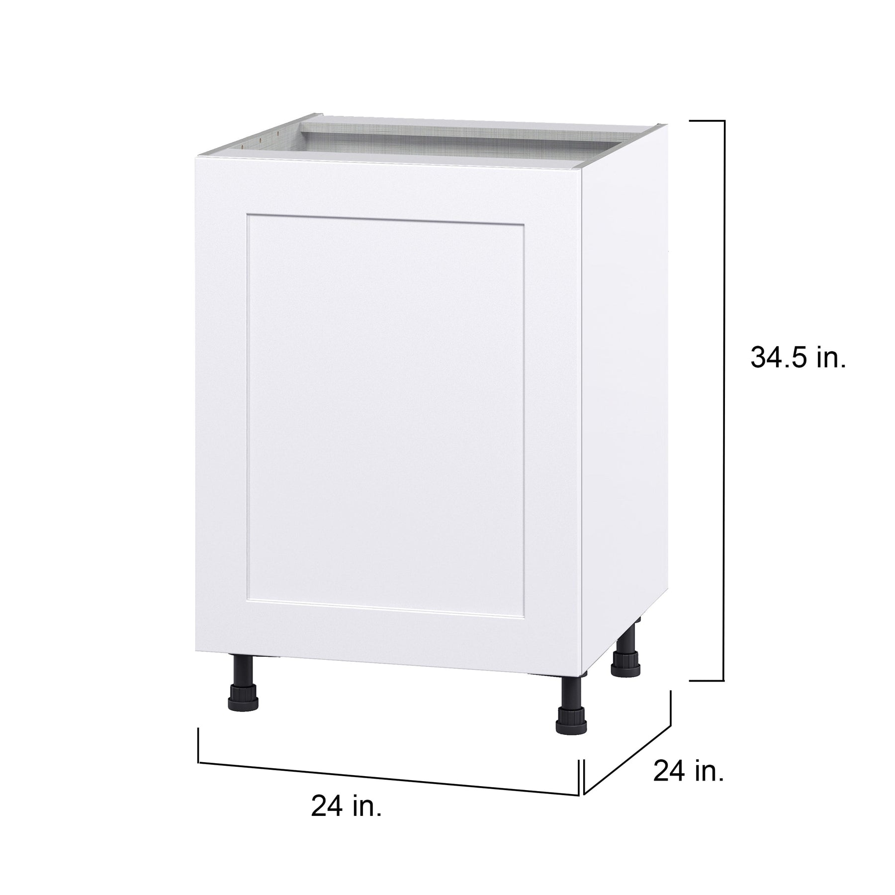 The Hugo&Borg Jolie 24" Base Cabinet offers luxurious storage with its expansive full access construction, providing 20% more space than traditional cabinets. Featuring a warm white, hand-painted flat panel shaker style, this cabinet arrives fully assembled, making it an ideal choice for both professionals and DIY enthusiasts. Its soft-close drawers and adjustable legs ensure seamless installation and use across a variety of spaces.