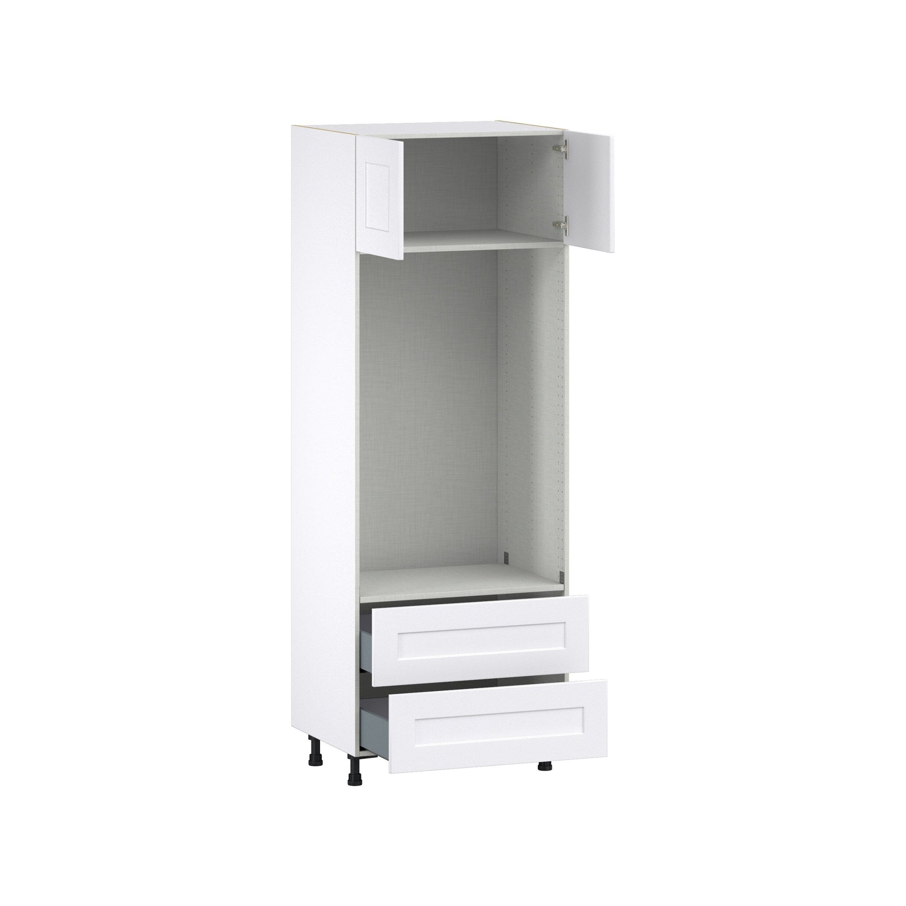 Hugo&Borg Jolie 30-in W x 84.5-in H x 24-in D Warm White 2-Drawers Microwave Base Fully Assembled Cabinet (Flat Panel Shaker Style)