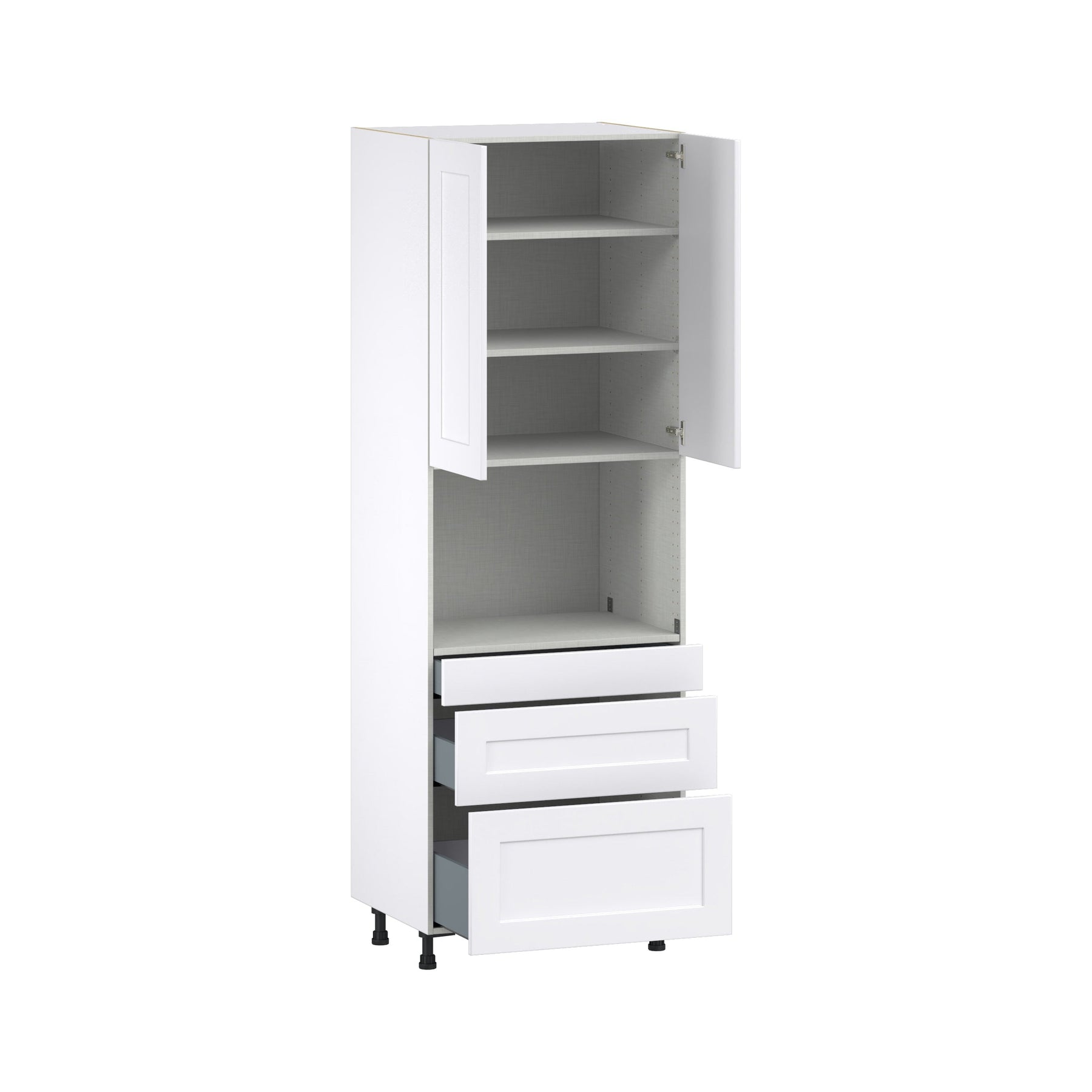 Hugo&Borg Jolie 30-in W x 89.5-in H x 24-in D Warm White 3-Drawers Pantry Fully Assembled Cabinet (Flat Panel Shaker Style)