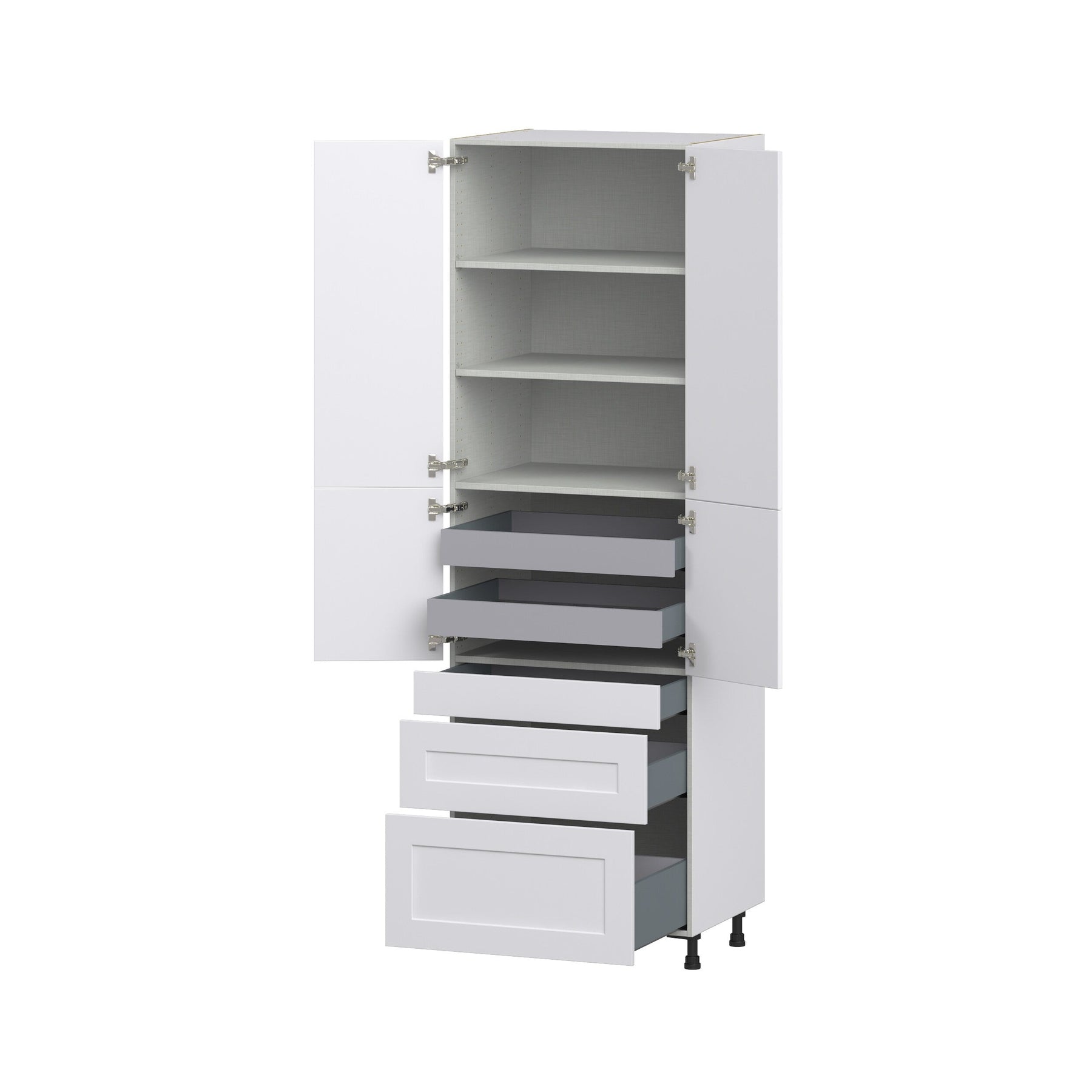Hugo&Borg Jolie 30-in W x 94.5-in H x 24-in D Warm White 5-Drawers Pantry Fully Assembled Cabinet (Recessed Panel Shaker Style)