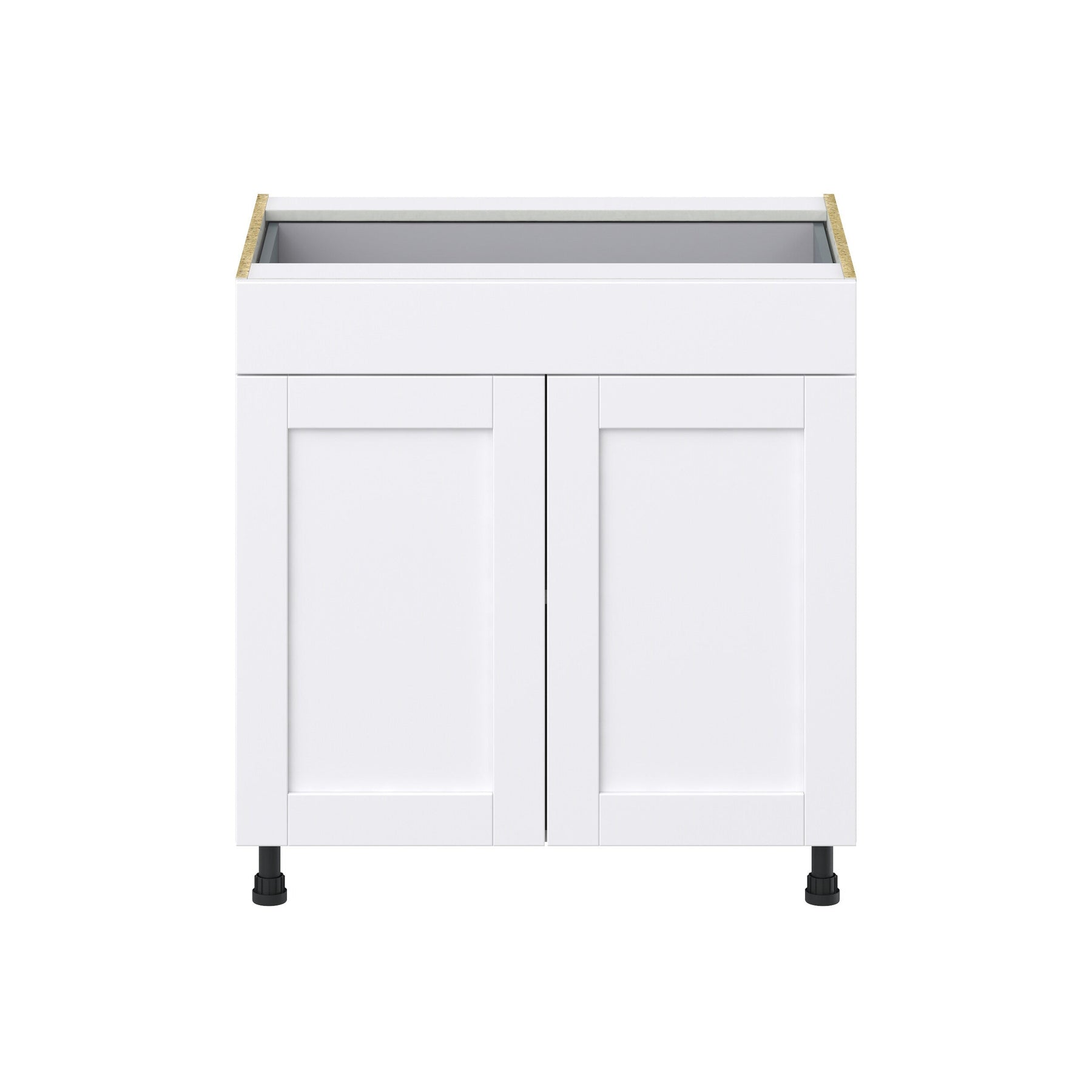This fully assembled Jolie base cabinet by Hugo&Borg offers timeless elegance with its warm white Shaker style. Its frameless design maximizes storage space, featuring soft-close doors and a full-extension drawer engineered from moisture-resistant materials for long-lasting quality.