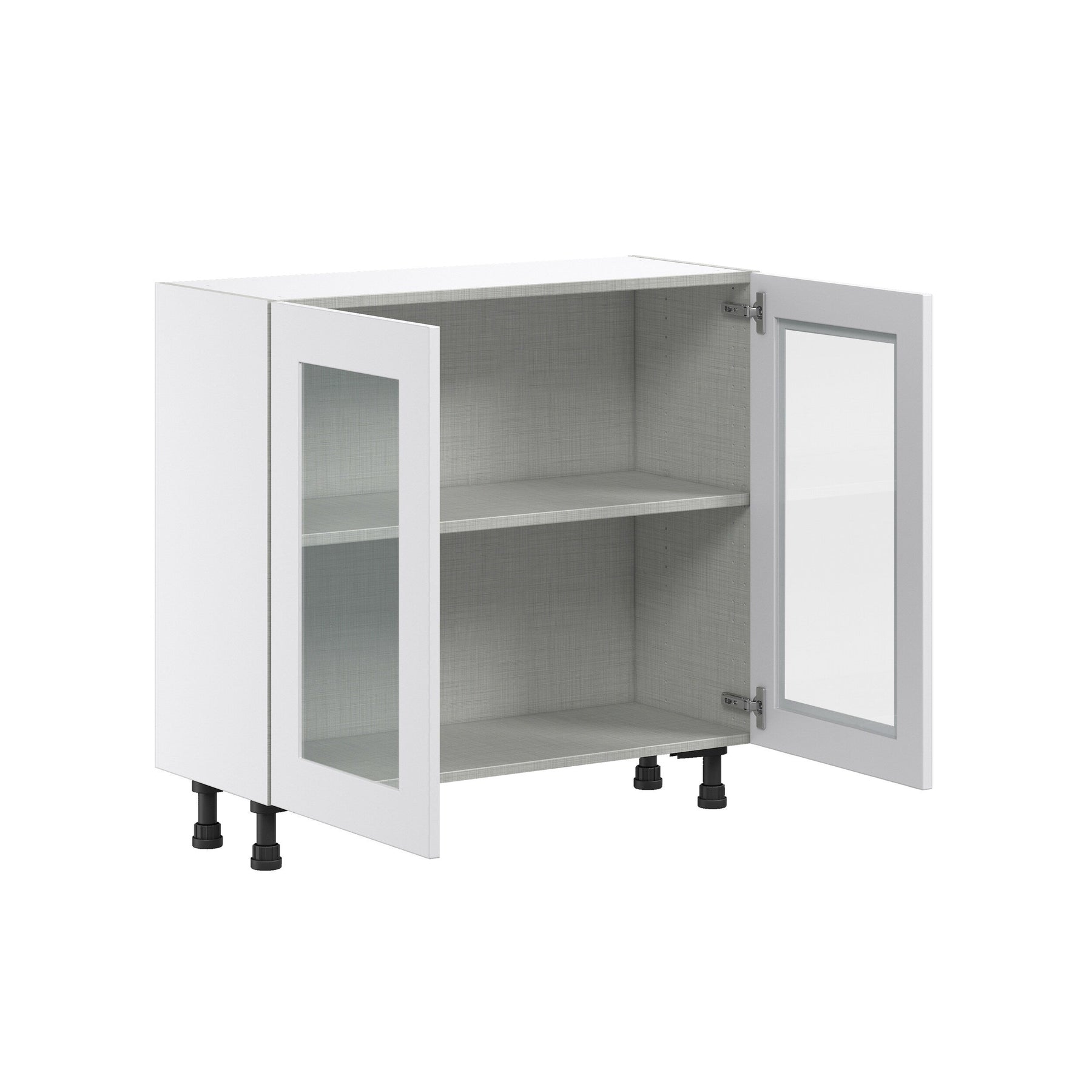 Hugo&Borg Jolie 36-in W x 34.5-in H x 16-in D Warm White Base Fully Assembled Cabinet (Glass Panel Shaker Door Style)