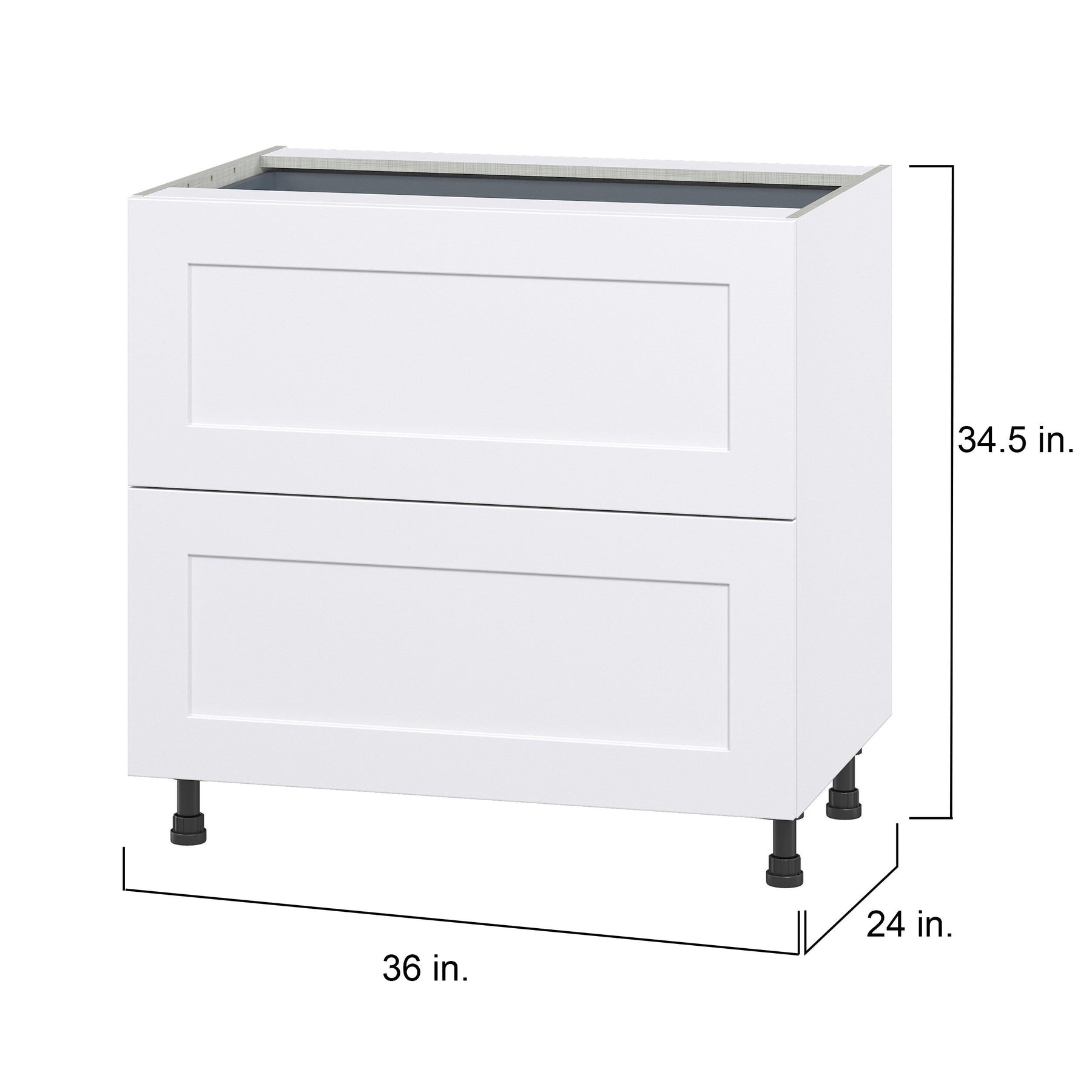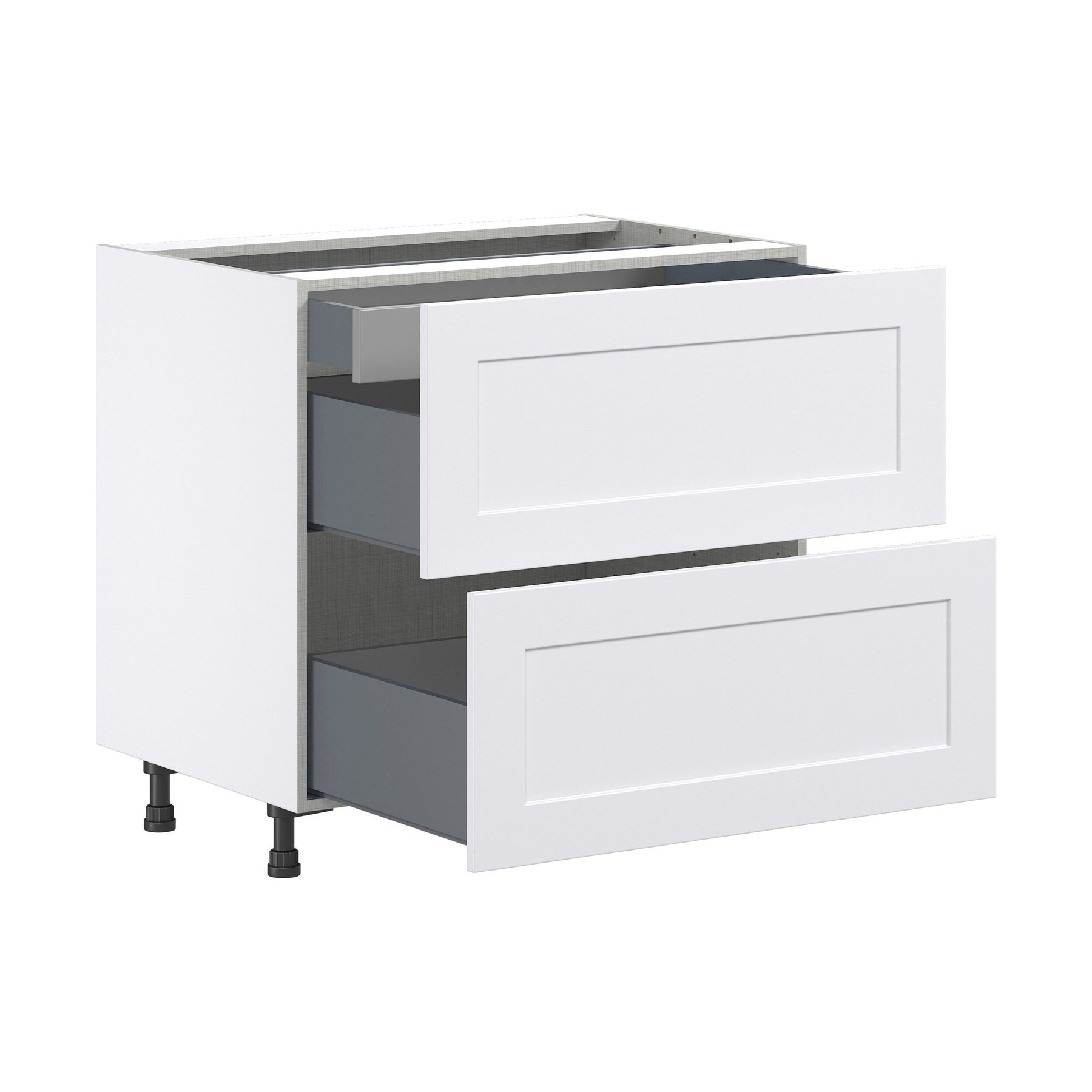 The Hugo&Borg Jolie Base Cabinet is a 36-inch wide, fully assembled cabinet designed for both functionality and elegance in your kitchen or workspace. Enjoy extra storage space with its full access box construction and experience the convenience of premium soft-close drawers that ensure a quiet and smooth operation every time.