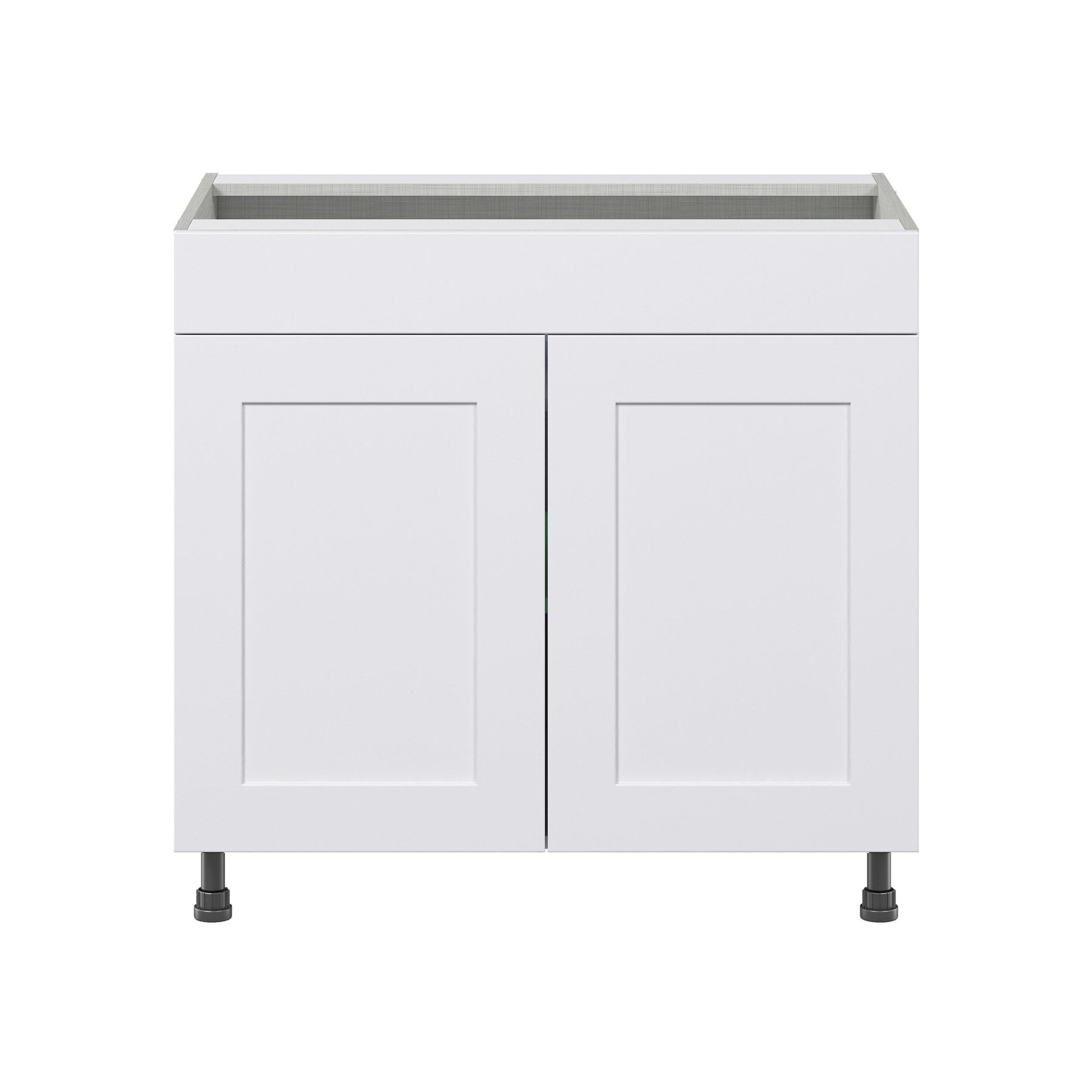Elevate your kitchen or bathroom with the Hugo&Borg Jolie Base Cabinet, offering a sleek flat panel Shaker door style in a warm white finish. Designed for both beauty and function, this fully assembled unit provides ample storage space with enhanced durability and easy installation features, making it a top choice for both pros and DIYers.
