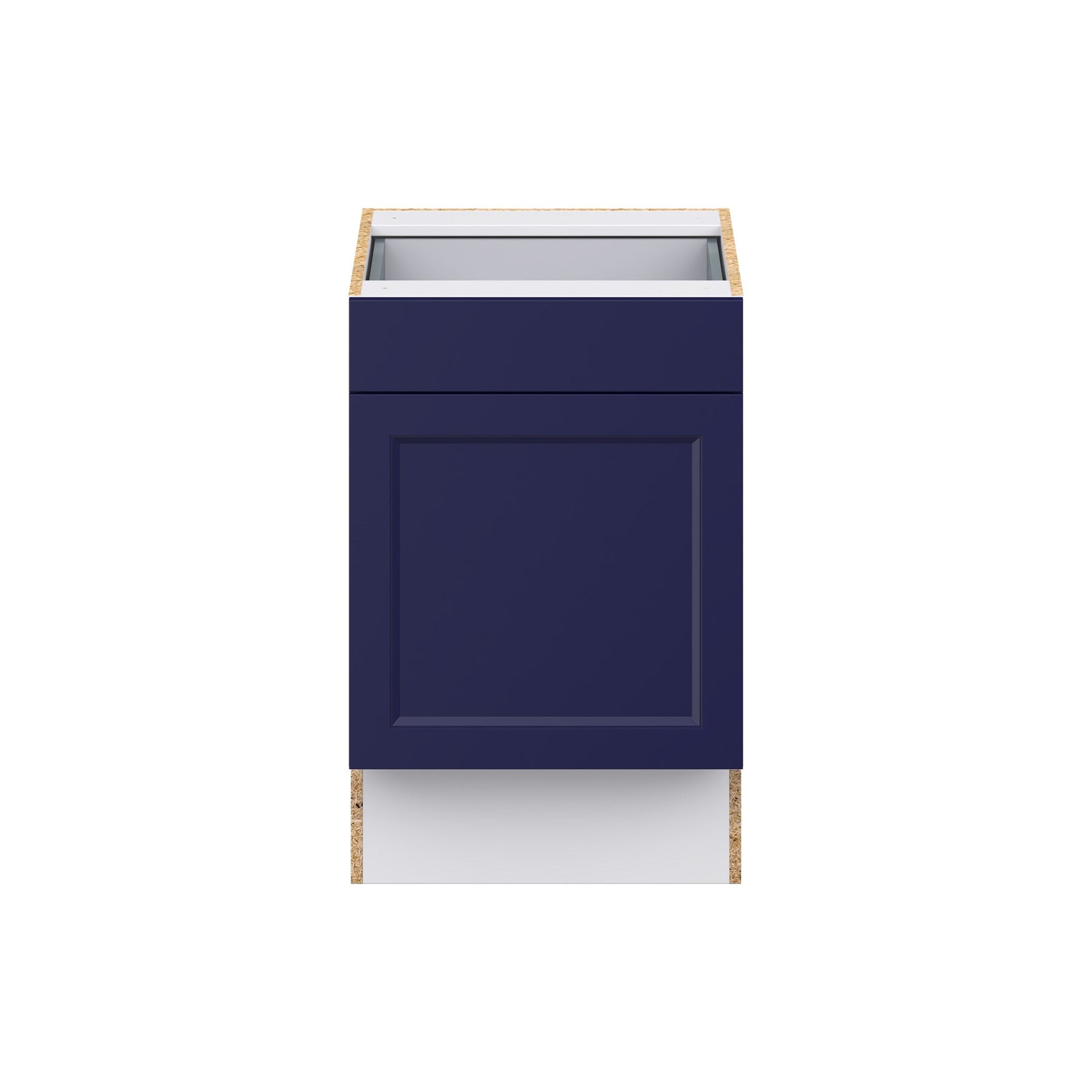 Enhance your kitchen or bathroom with the Hugo&Borg Lorette Cabinet in navy blue. This elegantly designed cabinet features a recessed panel Shaker style and comes fully assembled for hassle-free installation. Maximize your space with its frameless construction and enjoy the sleek, modern aesthetic supported by durable materials.