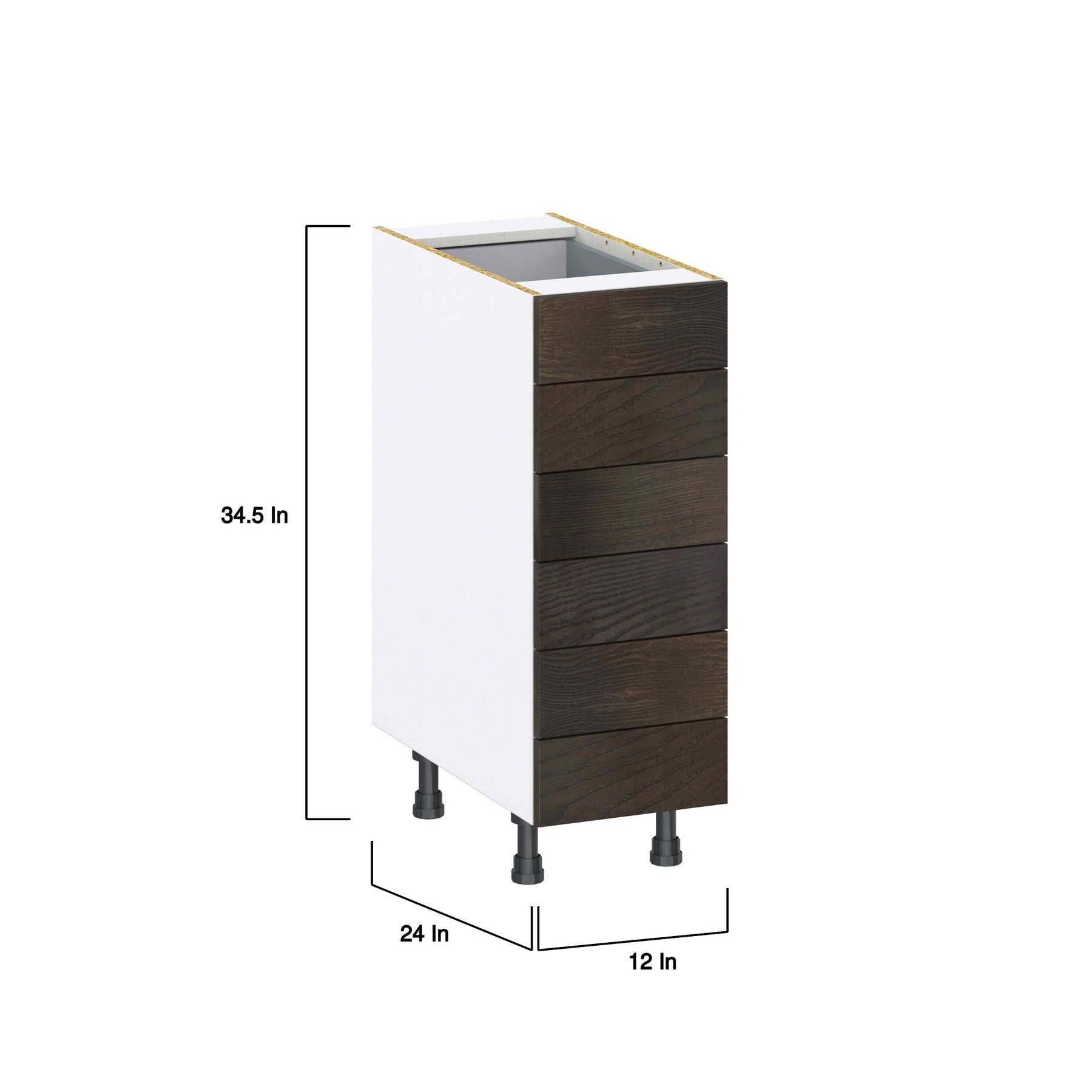 Elevate your space with the Hugo&Borg Montclaire 6-Drawer Base Cabinet, a masterful blend of functionality and elegance. Made from premium solid ash with a deep, smoky finish, it offers modern storage solutions with a classic touch. Its soft-close drawers and refined European-style construction make it an essential for sophisticated home design.