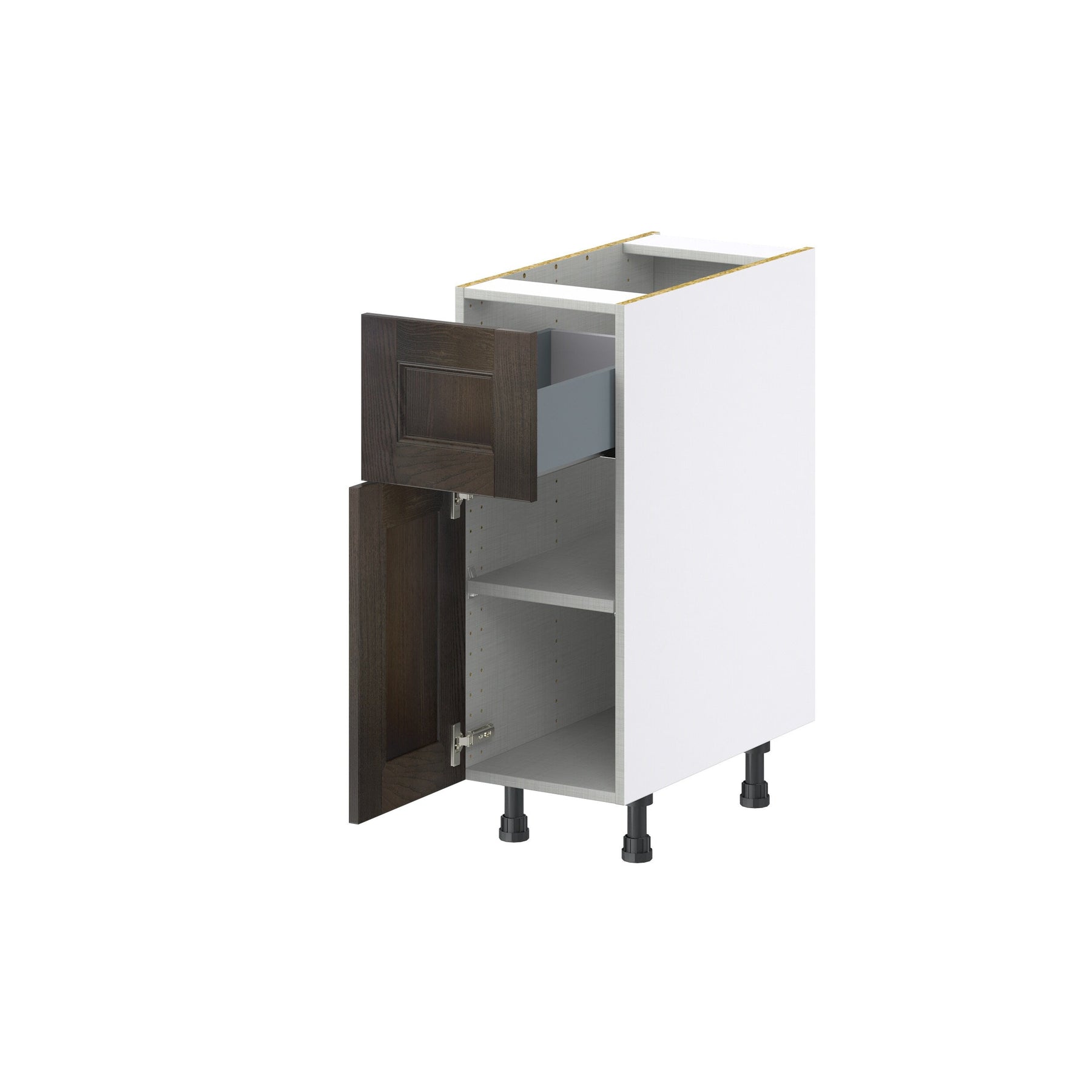 The Hugo&Borg Montclaire Shaker-style Base Cabinet combines timeless design with modern functionality. With its solid ash door frame and deep smoky finish, it introduces a traditional esthetic that complements a variety of interior palettes. Perfect for professionals and DIY enthusiasts, this fully assembled cabinet includes premium features like soft-close doors and drawers, providing a seamless blend of style and utility.
