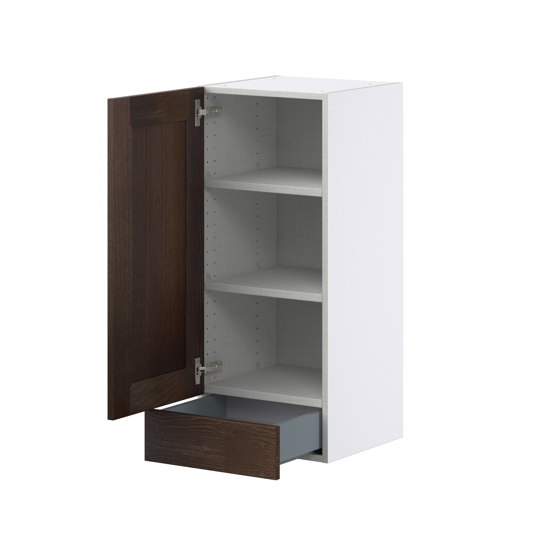 Elevate your interior with the Hugo&Borg Montclaire 1-Drawer Wall Cabinet. This recessed panel Shaker style piece combines functionality and style, offering 20% more storage with its European-style design and soft-close technology. Perfectly suited for professionals and DIY enthusiasts, its rich smoky color and durable construction make it a standout addition to any space.