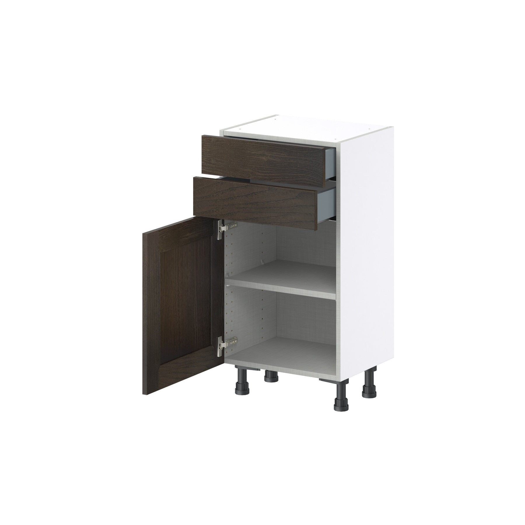 A: Yes, both the drawers and door are equipped with a soft-close mechanism for quiet and gentle closing.