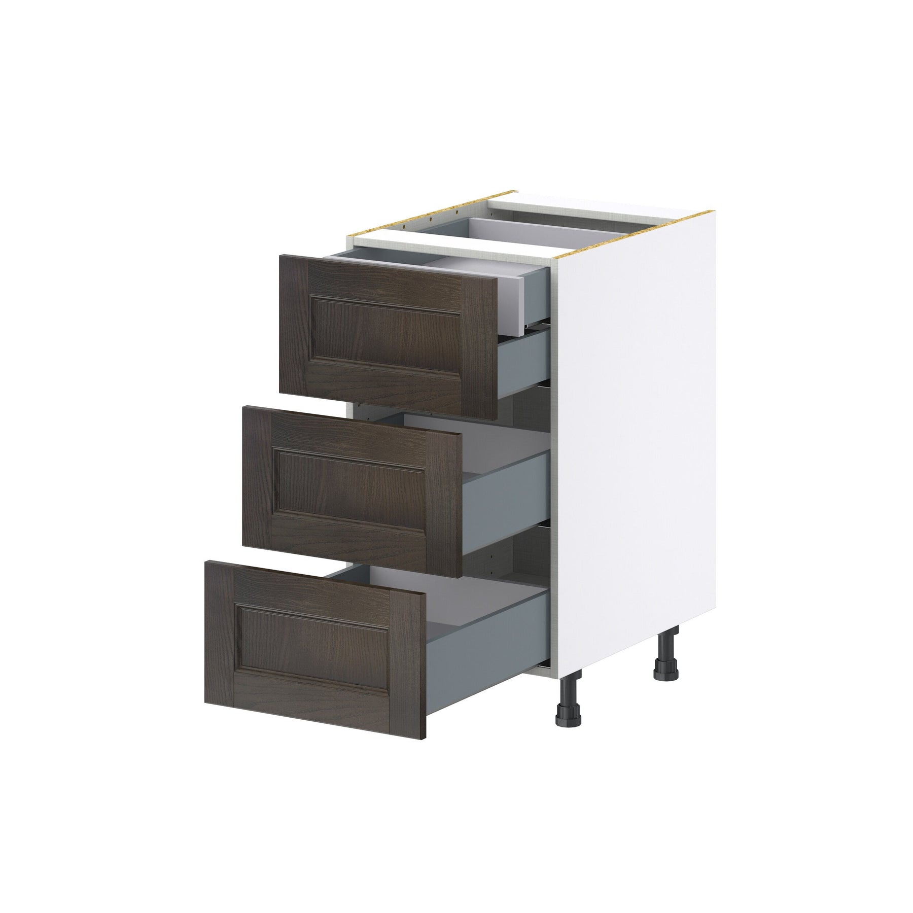 The Hugo&Borg Montclaire 4-Drawer Base Cabinet exemplifies European design with its frameless structure, providing 20% more storage. Crafted with solid ash and featuring a stunning smoky stain, it promises elegance and durability in every detail, making it a must-have for modern and classic spaces alike.