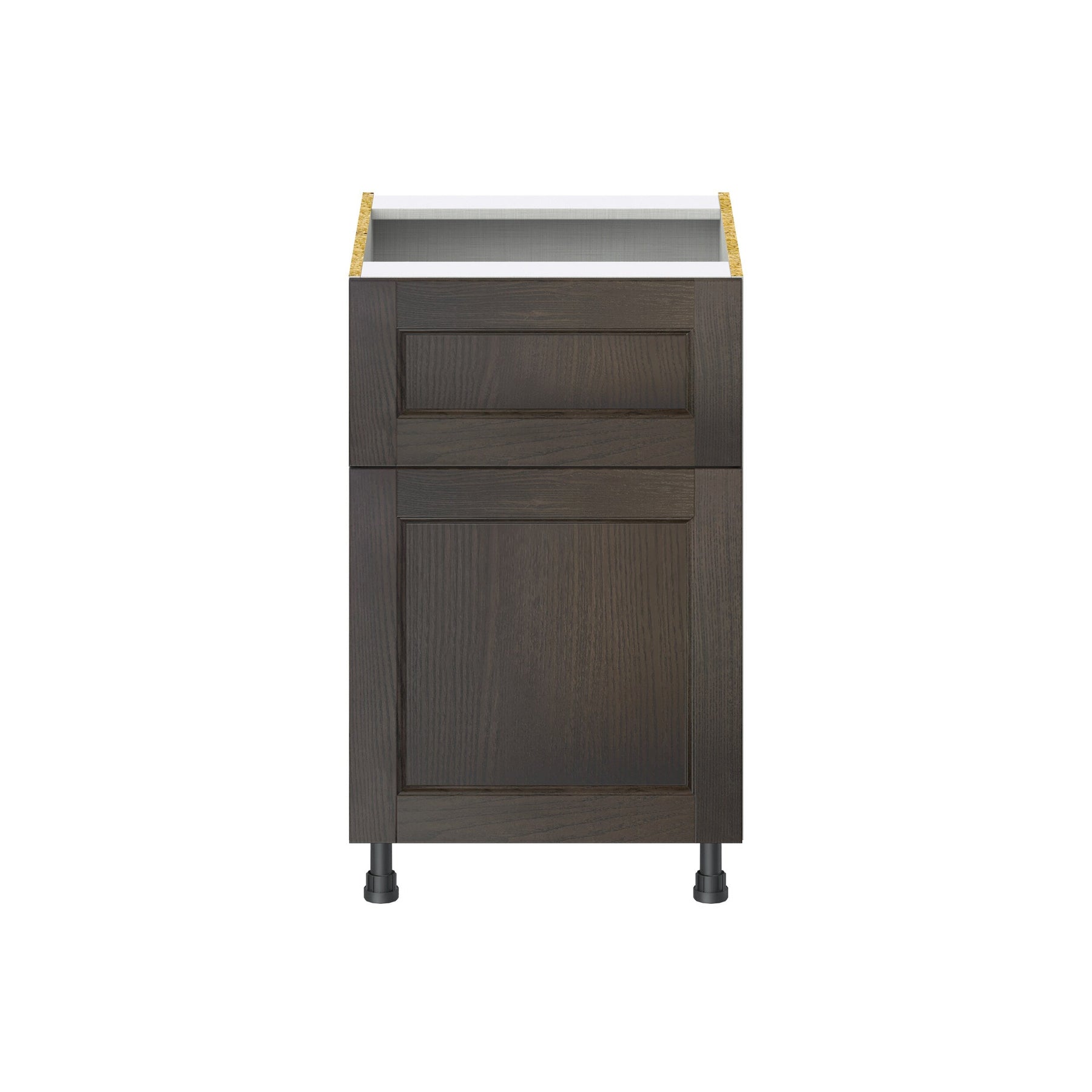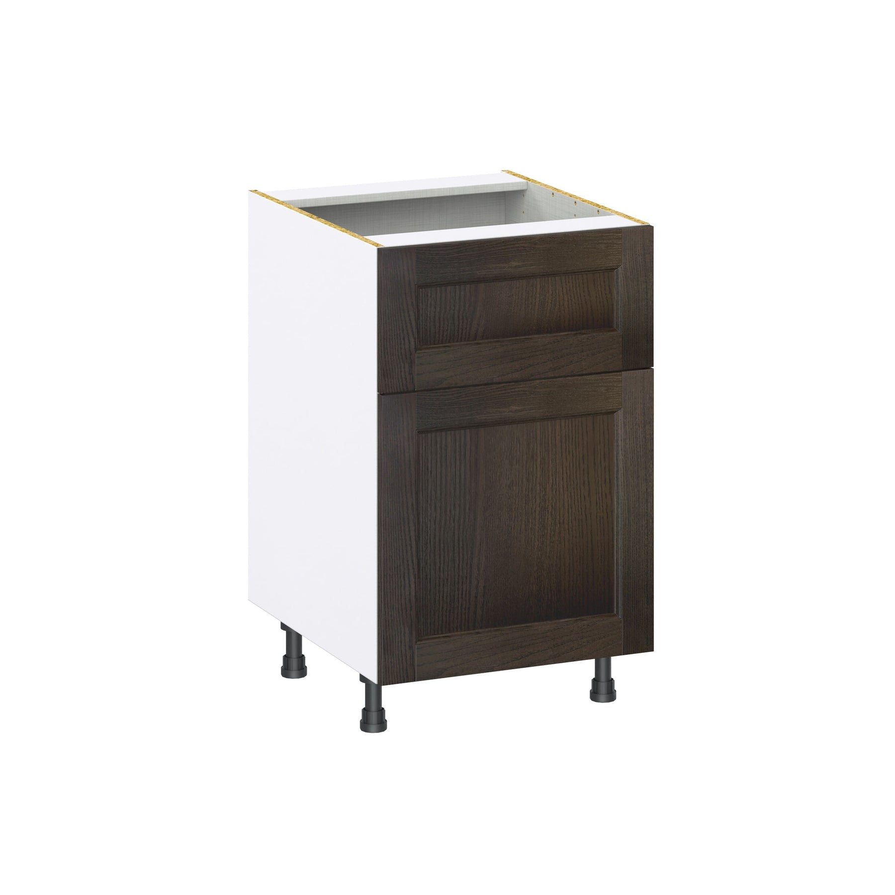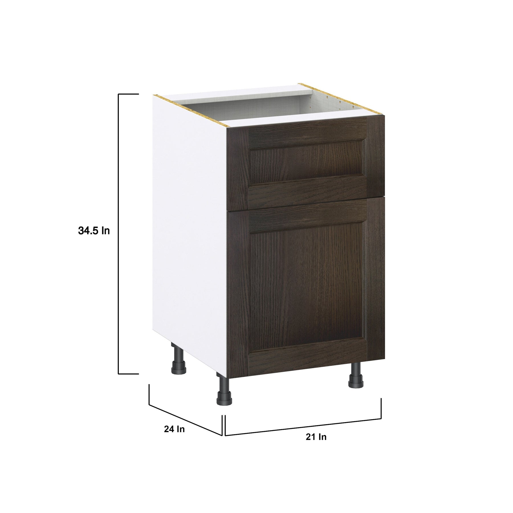 The Hugo&Borg Montclaire 21-in Wood Base Cabinet offers professional-grade storage with its European-style construction, providing up to 20% more space. This fully assembled unit features a classic recessed panel Shaker design, blending elegance with functionality, perfect for any kitchen or workspace.