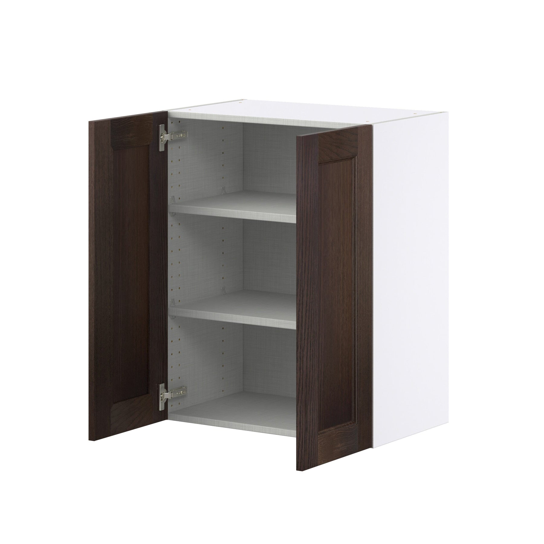 Elevate your home with the Hugo & Borg Montclaire wall cabinet, featuring a classic Shaker door style that complements both modern and traditional interiors. Crafted from quality wood, this cabinet boasts a deep, smoky finish and a frameless design that maximizes storage capacity, making it as functional as it is stylish. Enjoy effortless use with premium soft-close doors and adjustable shelves.