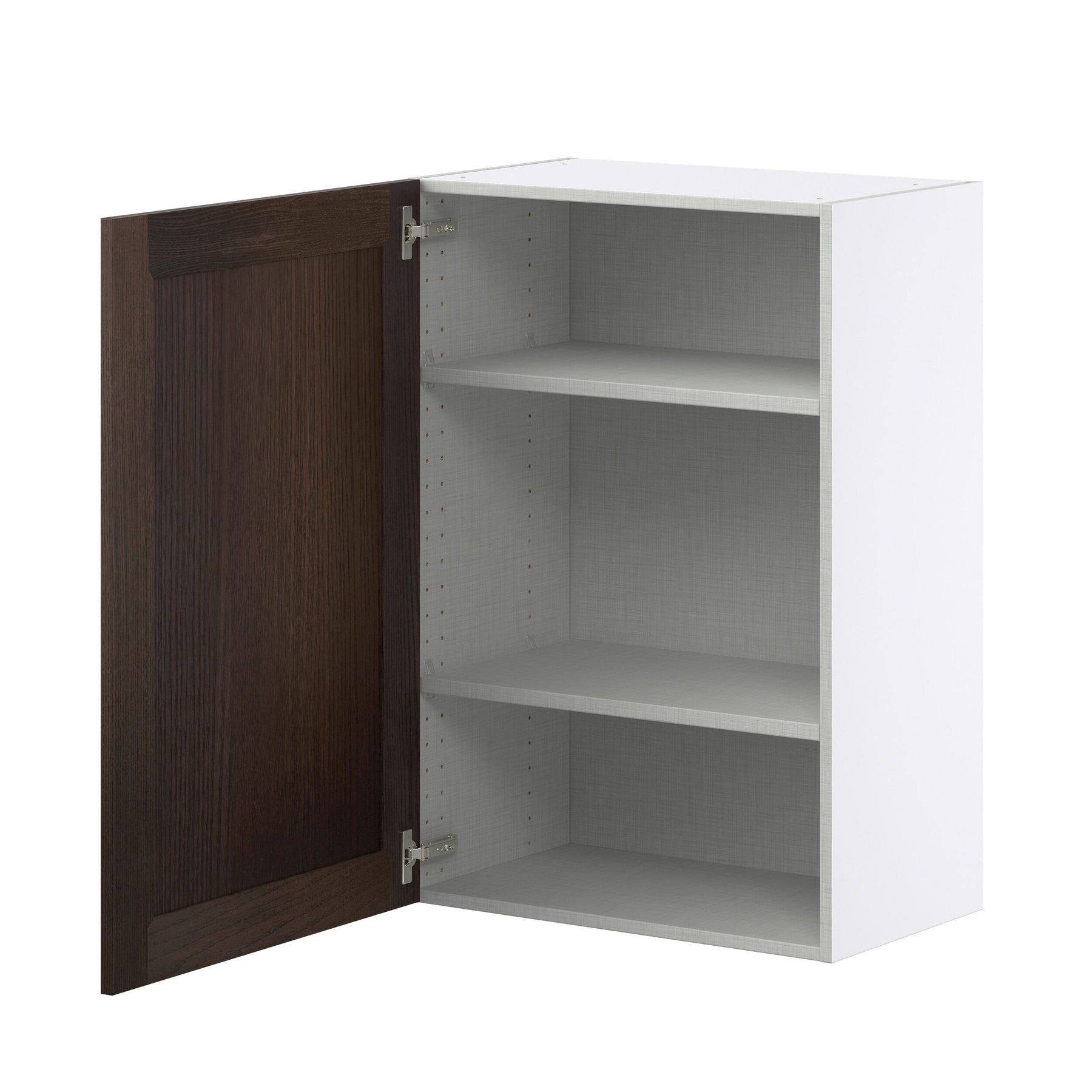 The Montclaire 24-inch Wood Wall Cabinet by Hugo&Borg combines timeless Shaker styling with modern functionality. Fully assembled with a solid ash door frame, this cabinet enhances your space with its deep smoky color and efficient European-style frameless construction for 20% more storage. Soft-close technology and adjustable shelves make it a premium choice for both design and practicality.