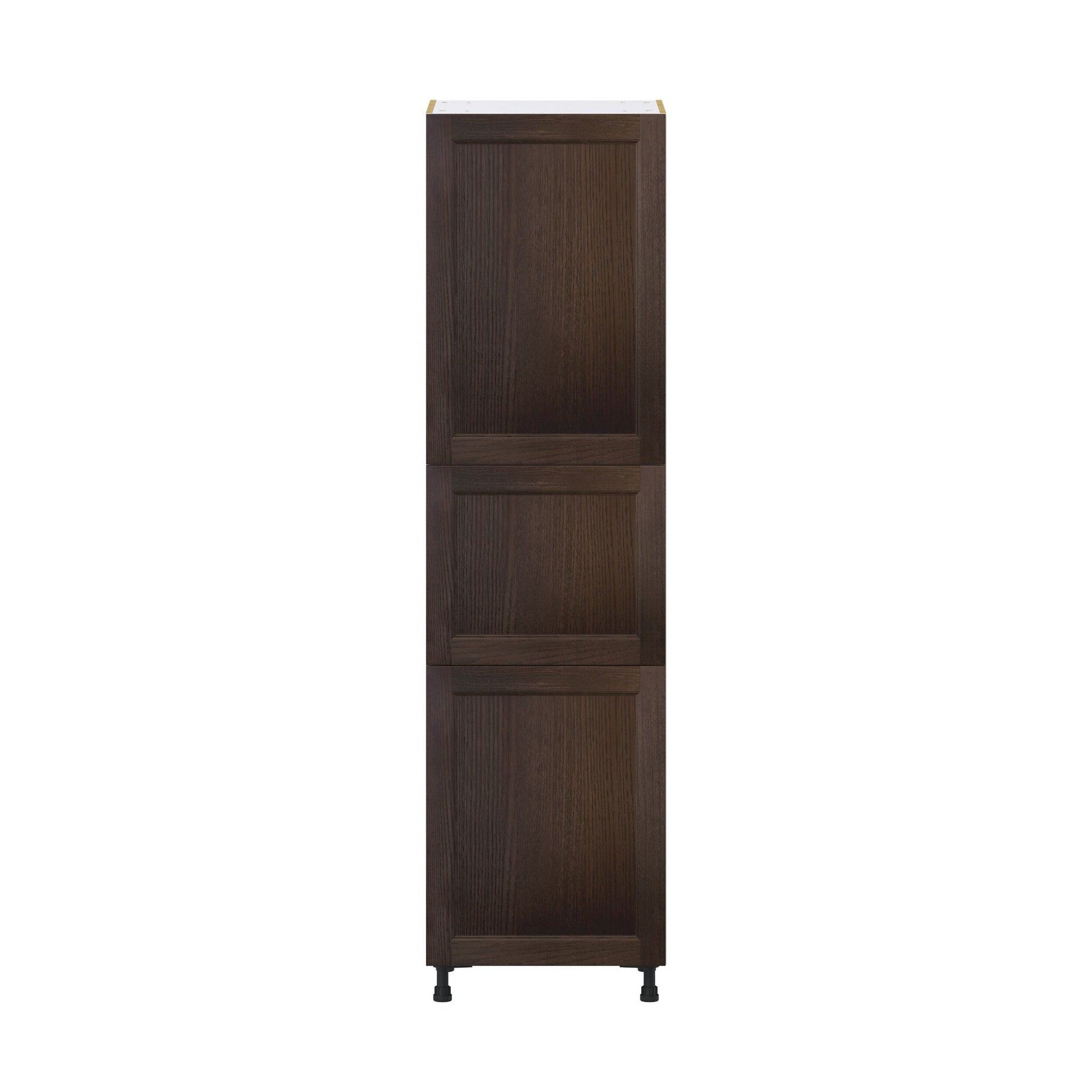 Transform your kitchen with the Hugo&Borg Montclaire 24-inch Wood Pantry Cabinet, showcasing a stunning recessed panel Shaker door style. Its full access European-style construction offers ample storage space with adjustable shelves, while the deep smoky color adds a traditional yet neutral aesthetic to any space.