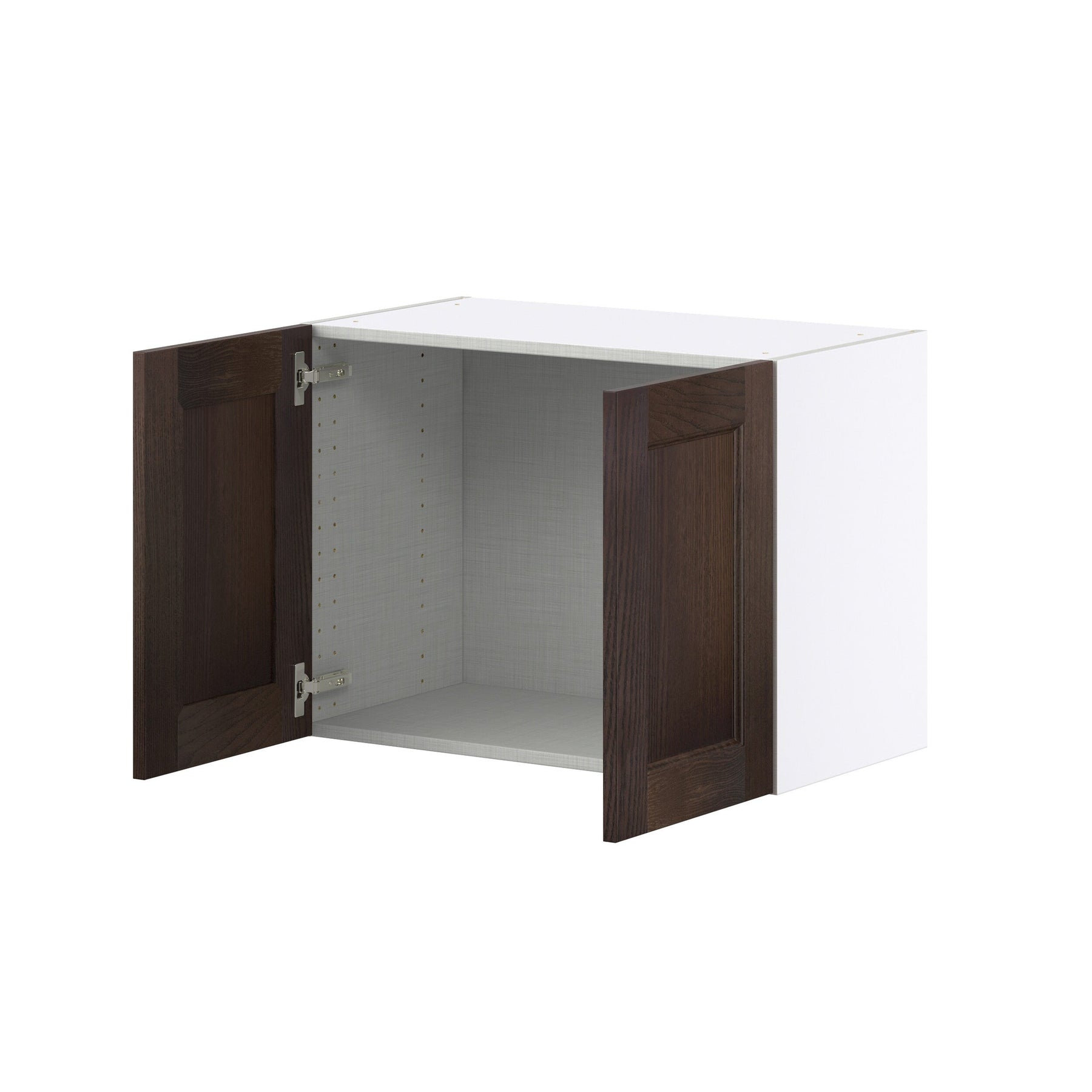 The Hugo&Borg Montclaire Wall Cabinet offers elevated storage solutions with its spacious European-style construction. Made from solid ash and featuring premium soft-close recessed panel Shaker doors, this cabinet complements traditional and transitional styles with its deep smoky finish. Fully assembled, it's ready to install, saving time and effort.
