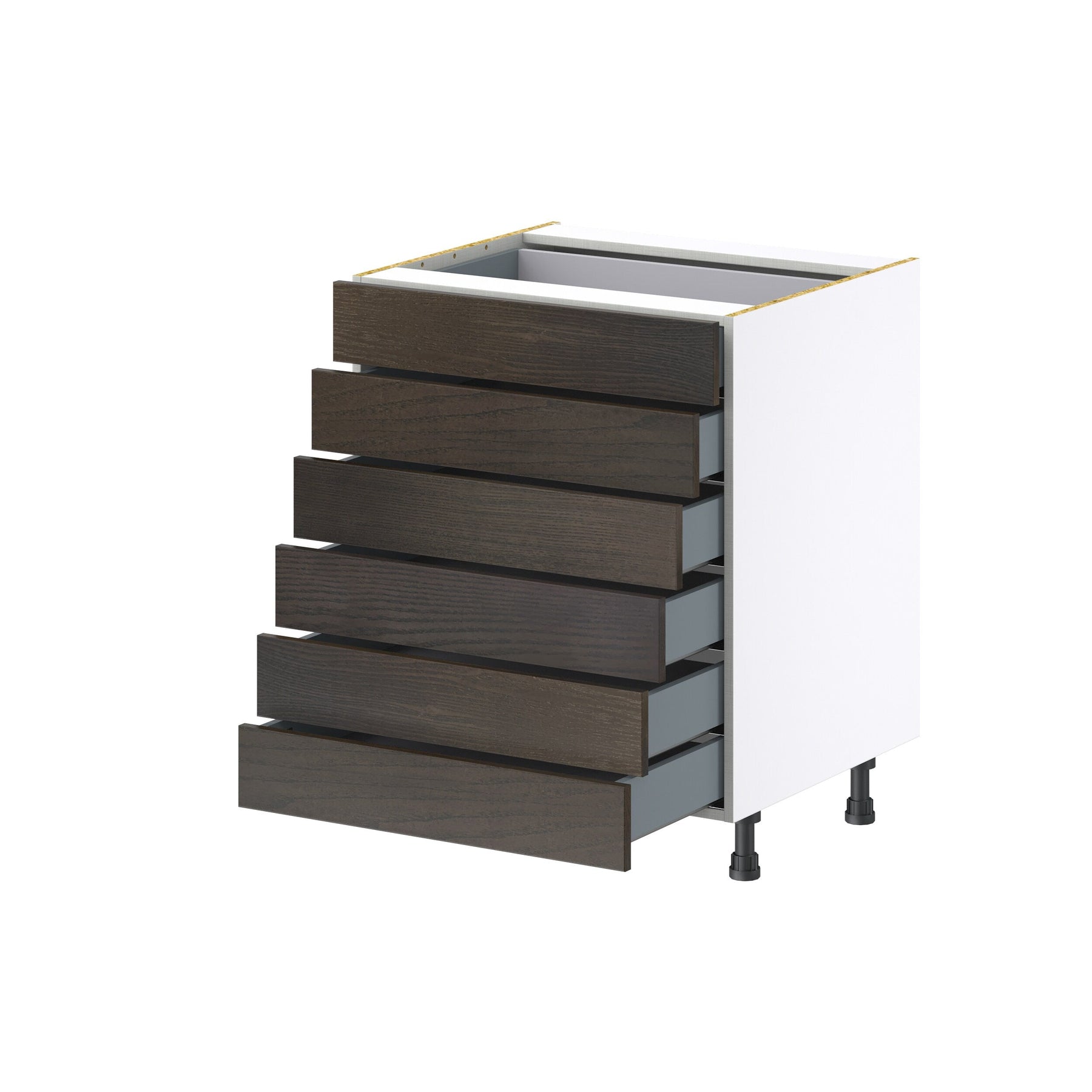 Transform your space with the Montclaire 6-Drawer Base Cabinet, an epitome of luxury and functionality. Its deep smoky finish whispers sophistication, effortlessly complementing any color scheme. Imagine this piece in an intimate kitchen or chic workspace, where its sleek European design enhances the ambiance. This cabinet isn't just a storage solution; it's a statement piece that ushers in a world of stylish living.
