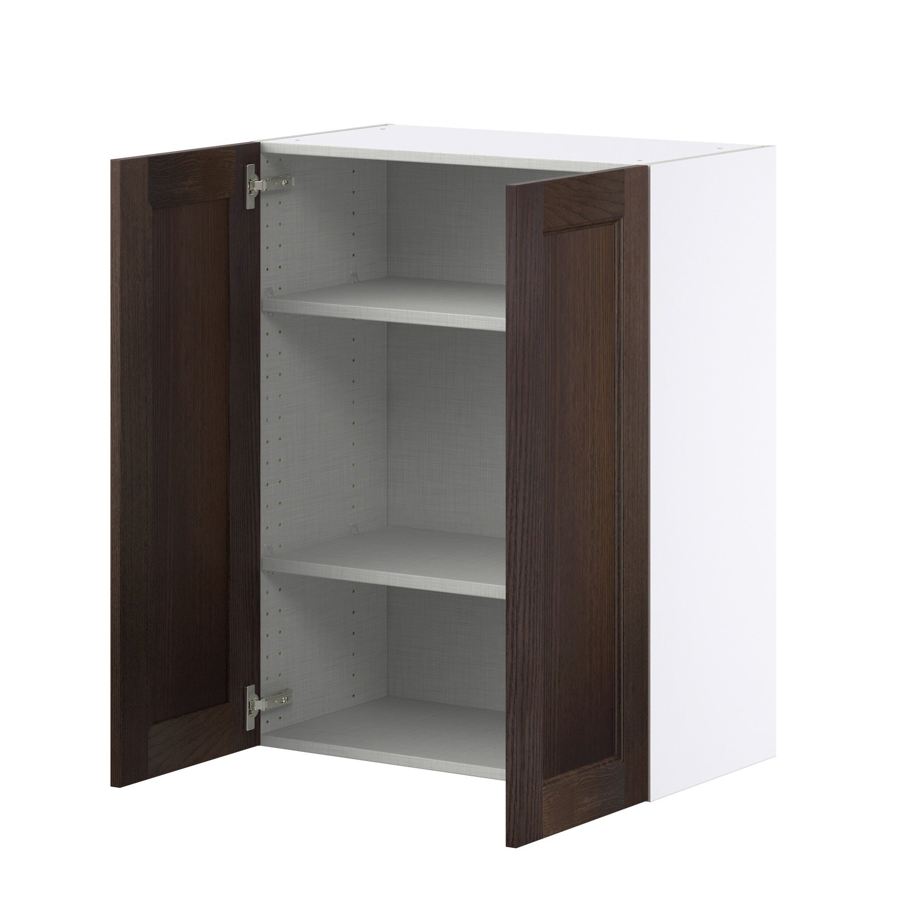 The Hugo&Borg Montclaire Wood Wall Cabinet brings European elegance to your home with its dark, smoky stain and recessed panel shaker door style. Crafted with durable engineered wood and a solid ash door frame, this cabinet offers modern versatility with ample storage and adjustable shelves—perfect for both professional contractors and DIY enthusiasts alike.
