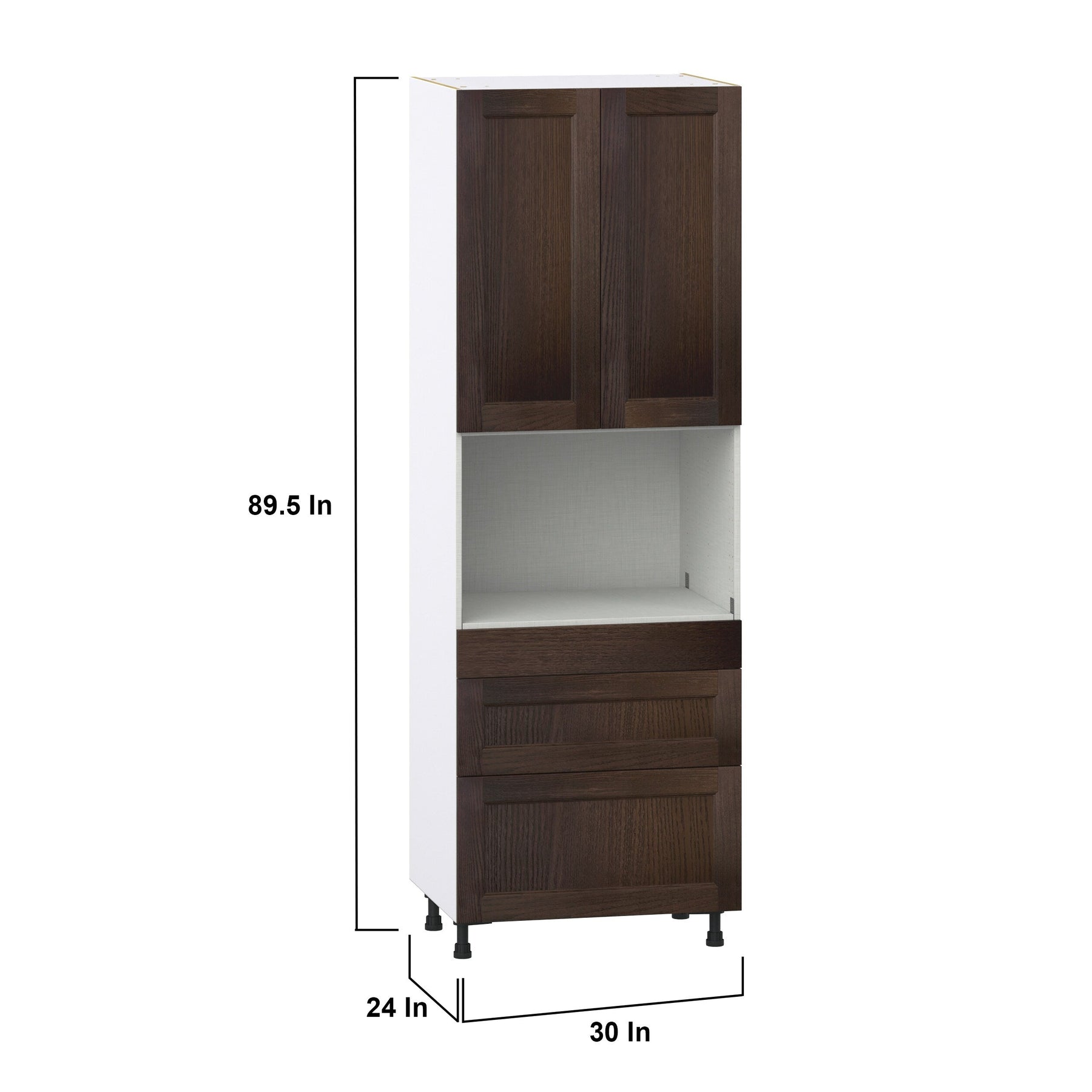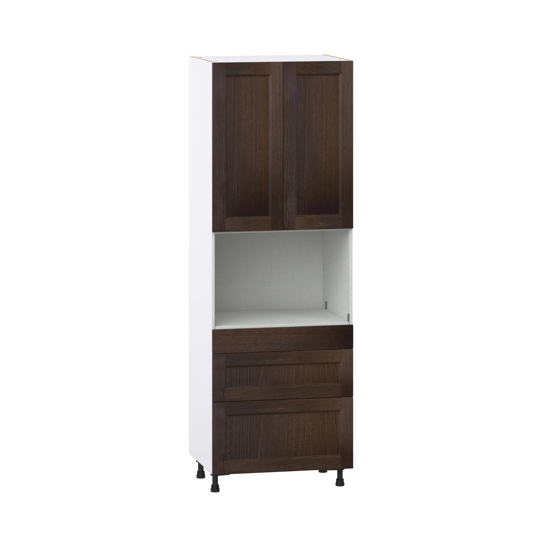 Elevate your kitchen with the Hugo&Borg Montclaire pantry cabinet. This 30-inch wide, fully-assembled cabinet features soft-close drawers and a solid ash frame, offering both timeless design and modern functionality. Its recessed panel Shaker style in deep smoky hue complements any decor while maximizing your storage with European-style full-access construction.