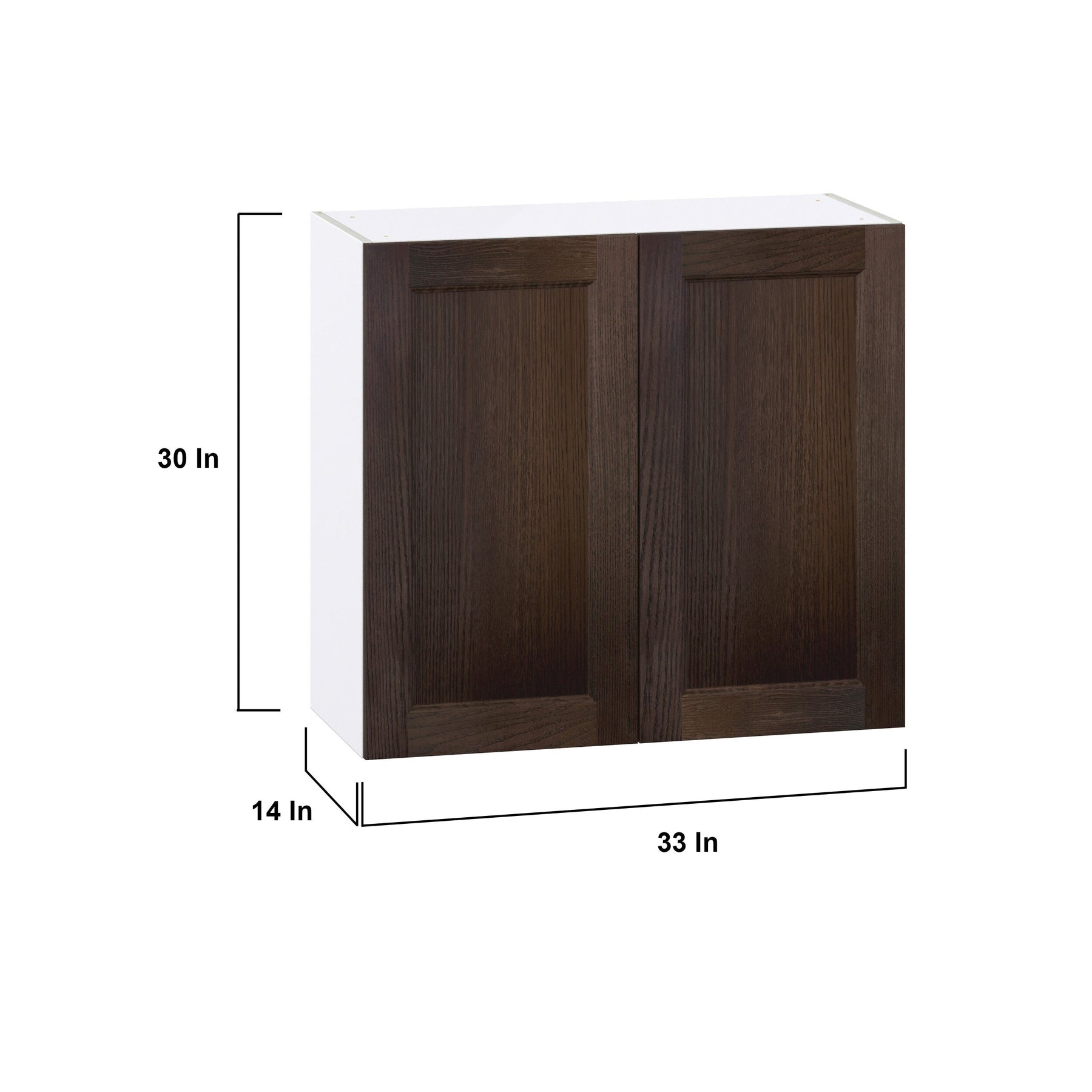 The Hugo&Borg Montclaire Wall Cabinet features a classic Shaker door style and rich smoky finish, perfect for elevating any kitchen or storage space. Fully assembled with a solid ash door frame, this cabinet offers durable, premium functionality, including soft-close doors and adjustable shelves for customizable storage. The European-style frameless design enhances both its style and functionality.