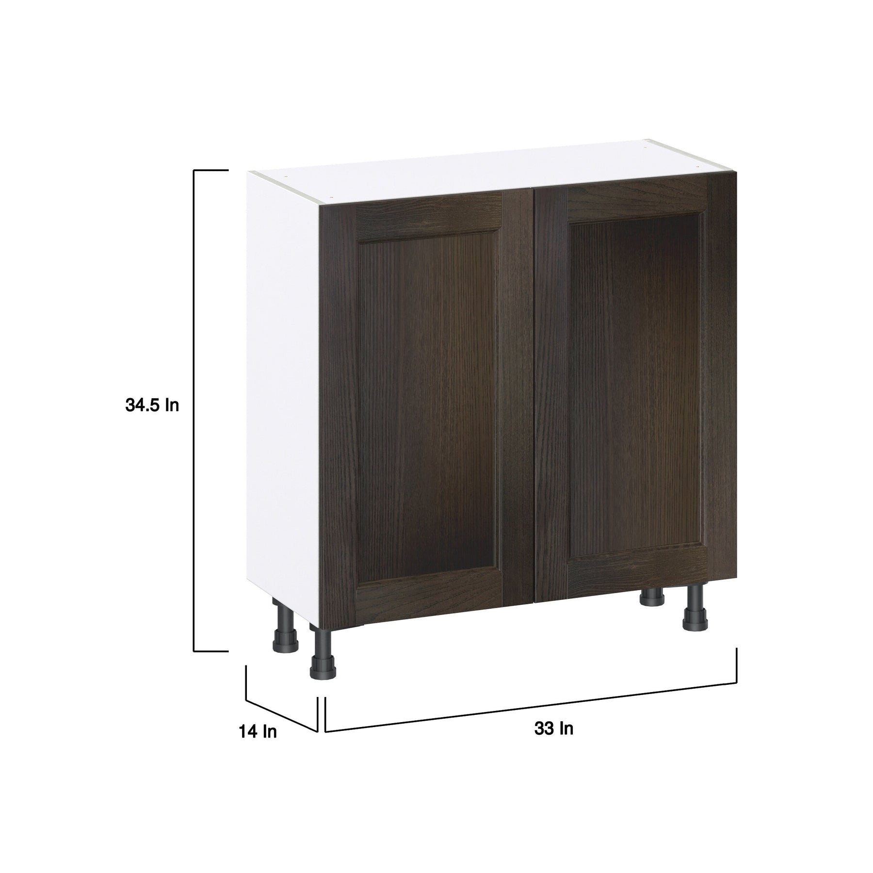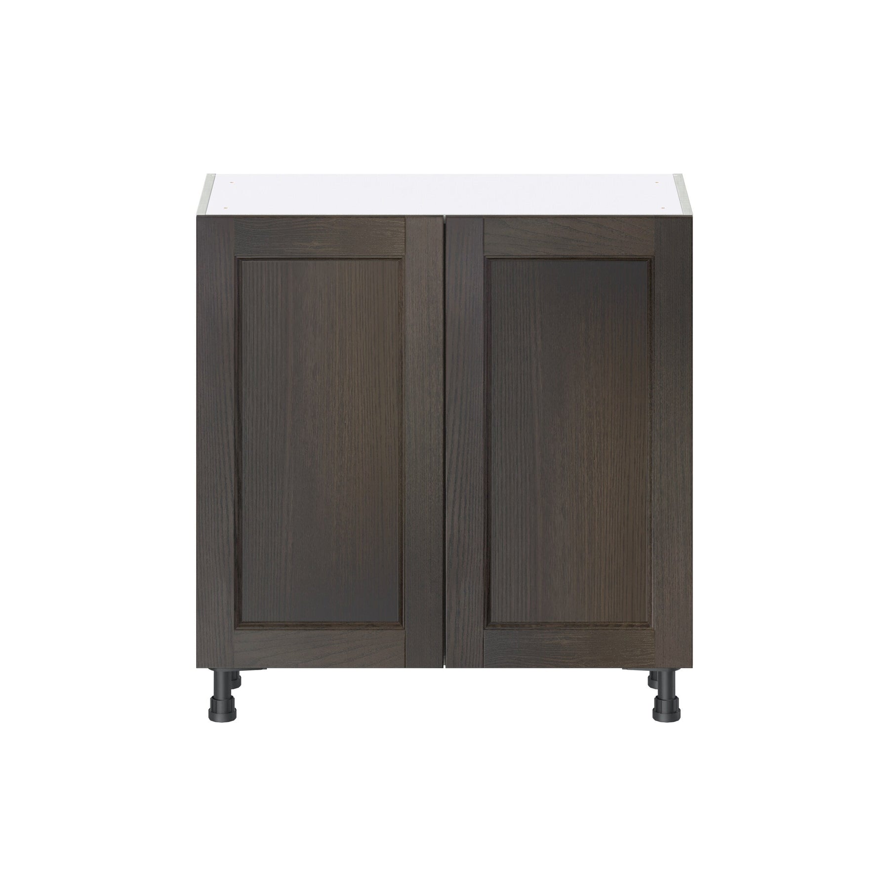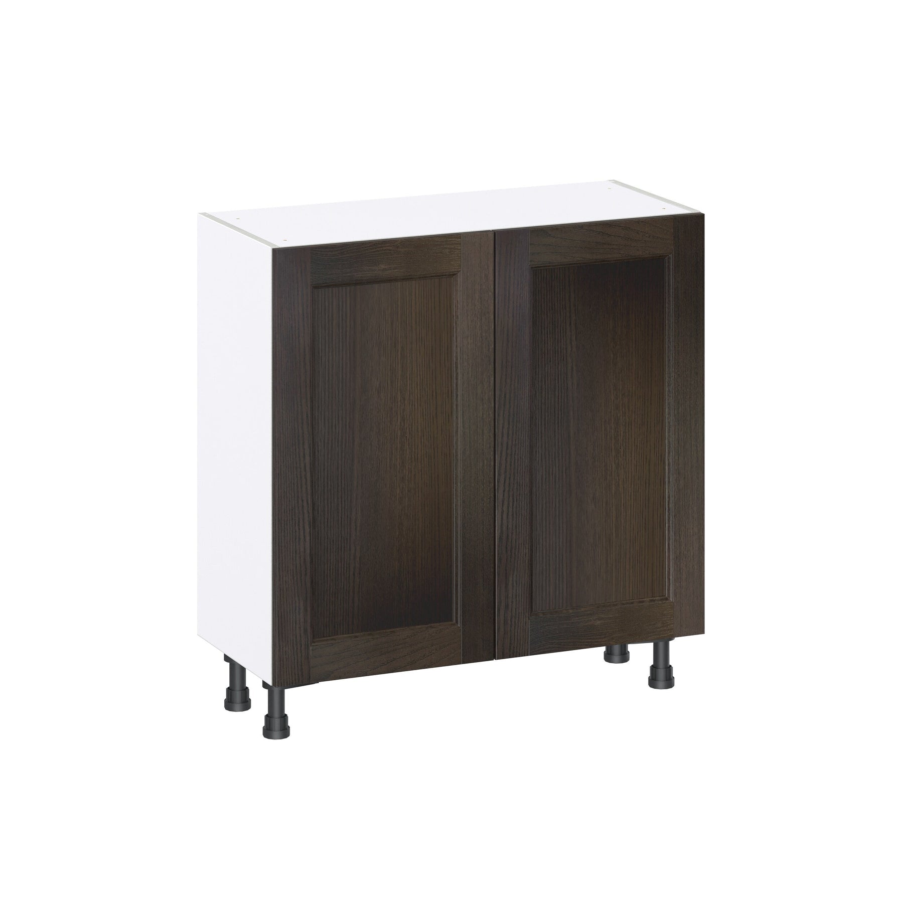 The Hugo&Borg Montclaire 33-in Wood Base Cabinet combines sleek design with premium functionality for your home improvement projects. Crafted with a solid ash door frame in a deep smoky finish, it offers both aesthetic appeal and practical features like full-access European-style construction and soft-close doors. This cabinet is perfect for adding elegant storage space to any room.