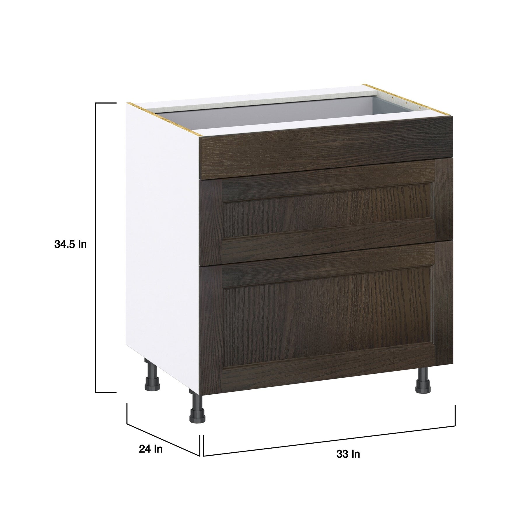 Hugo&Borg Montclaire 33-in W x 34.5-in H x 24-in D Wood 3-Drawer Base Fully Assembled Cabinet (Recessed Panel Style)