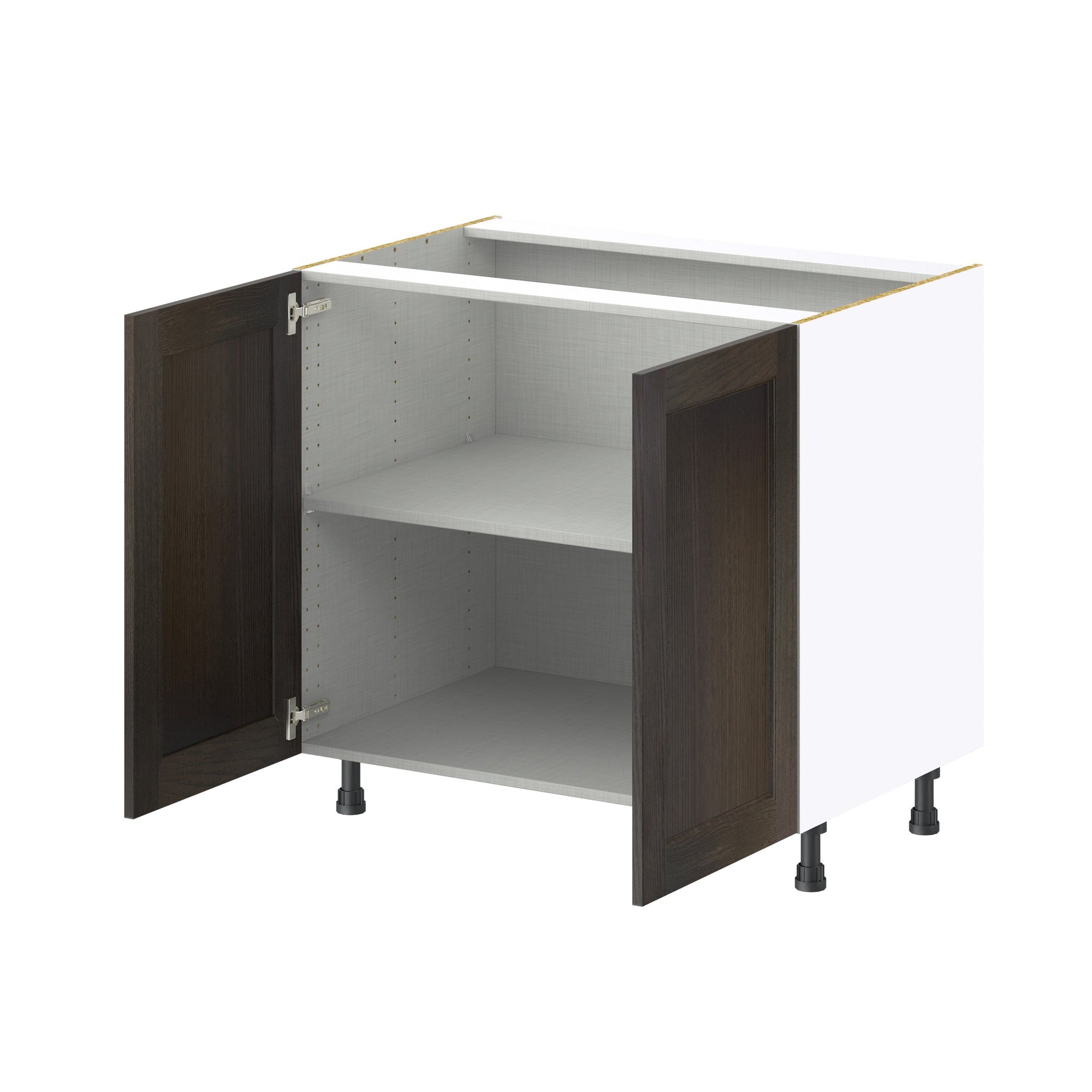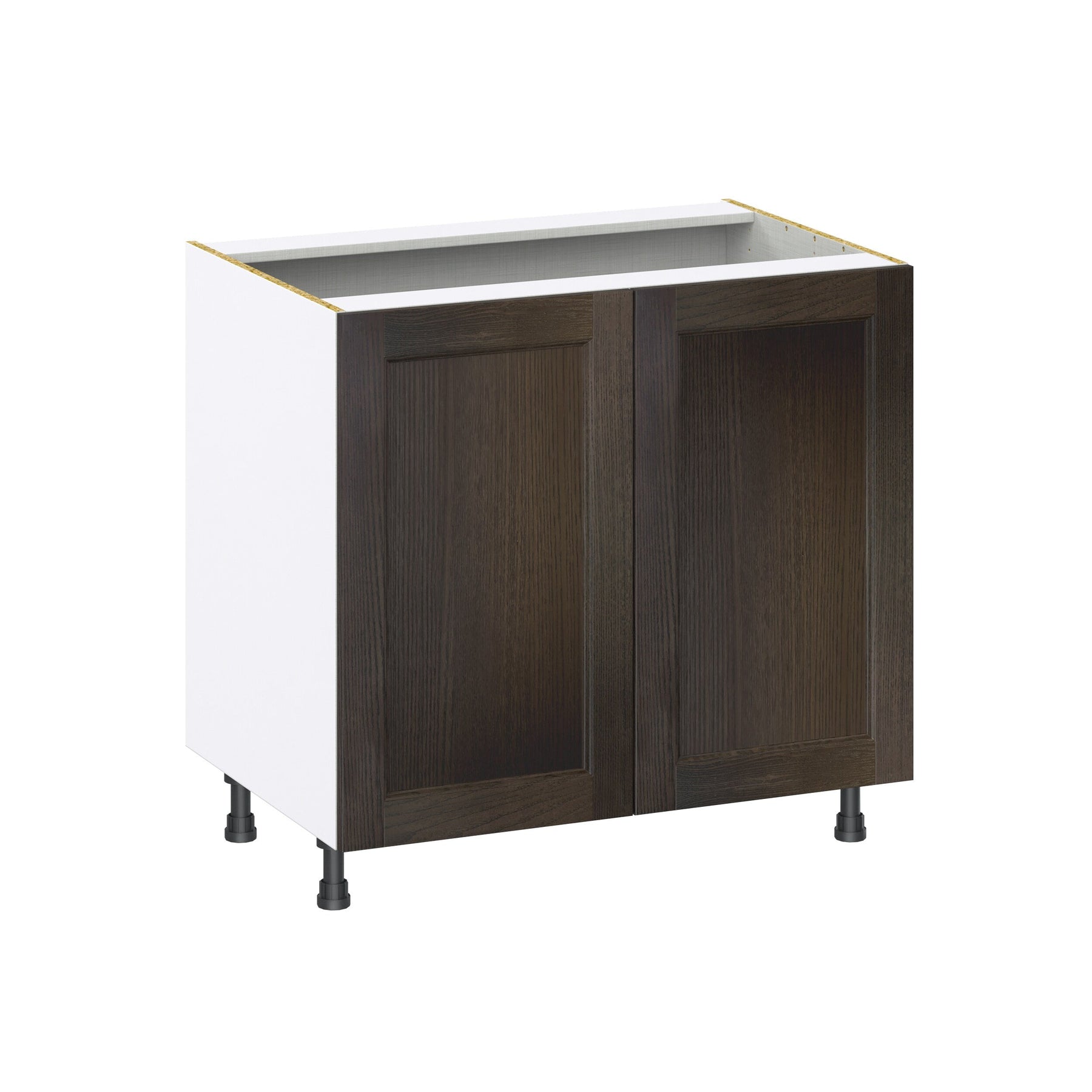 Elevate your kitchen or bathroom project with the Montclaire 36" Wood Base Cabinet. Fully assembled and featuring a classic recessed panel Shaker door style, this cabinet combines timeless elegance with practical functionality. With its durable construction and deep smoky finish, it promises to be the centerpiece of any transitional design.