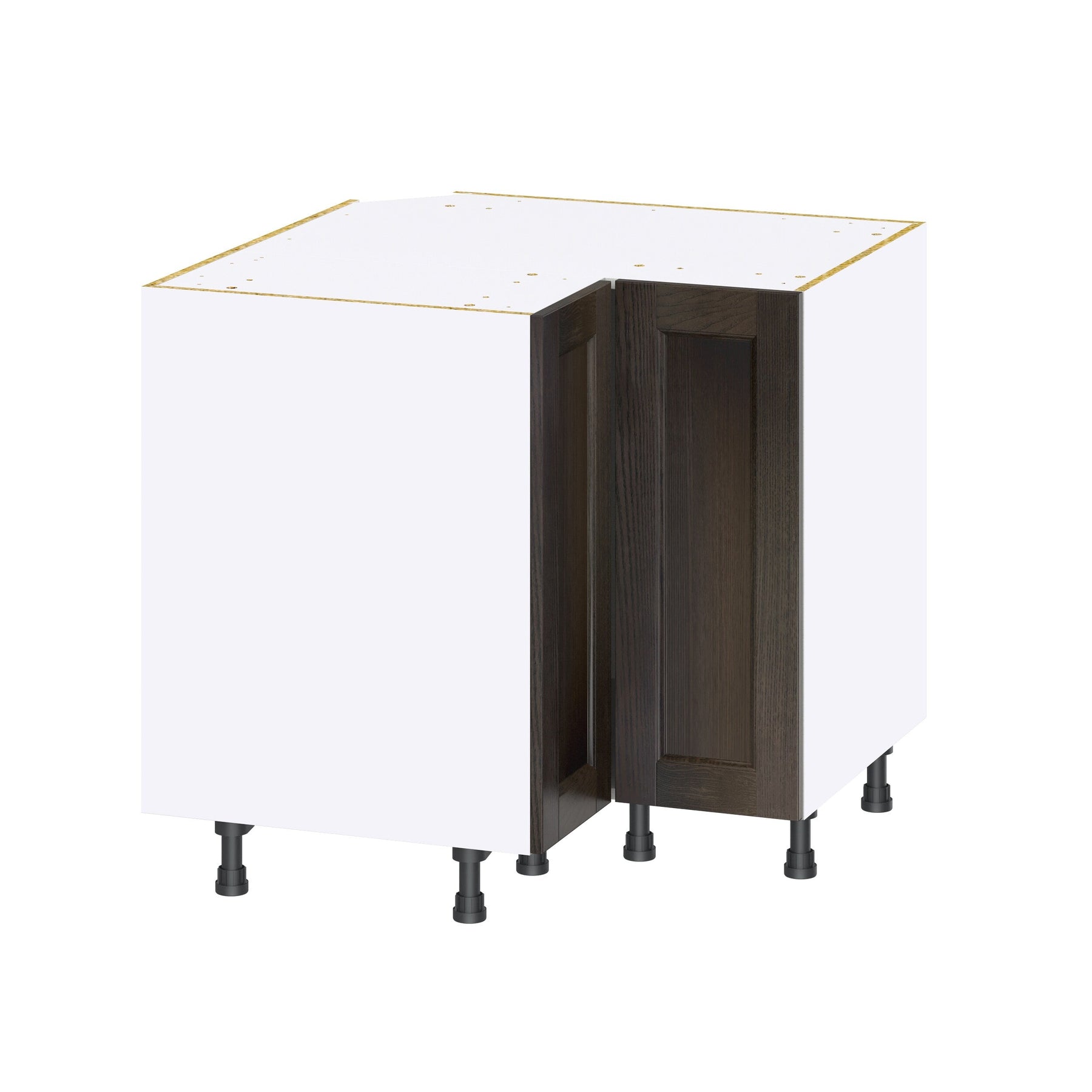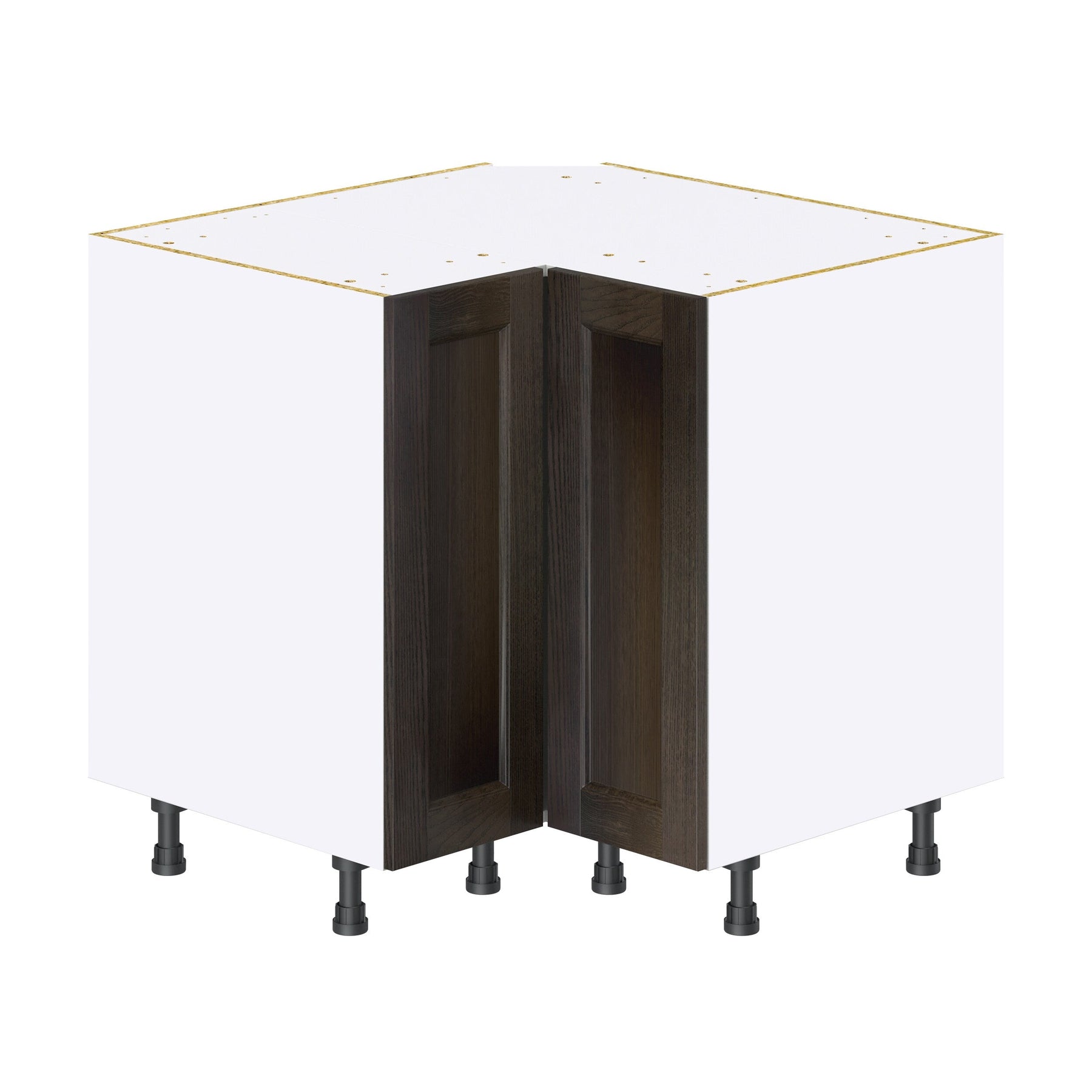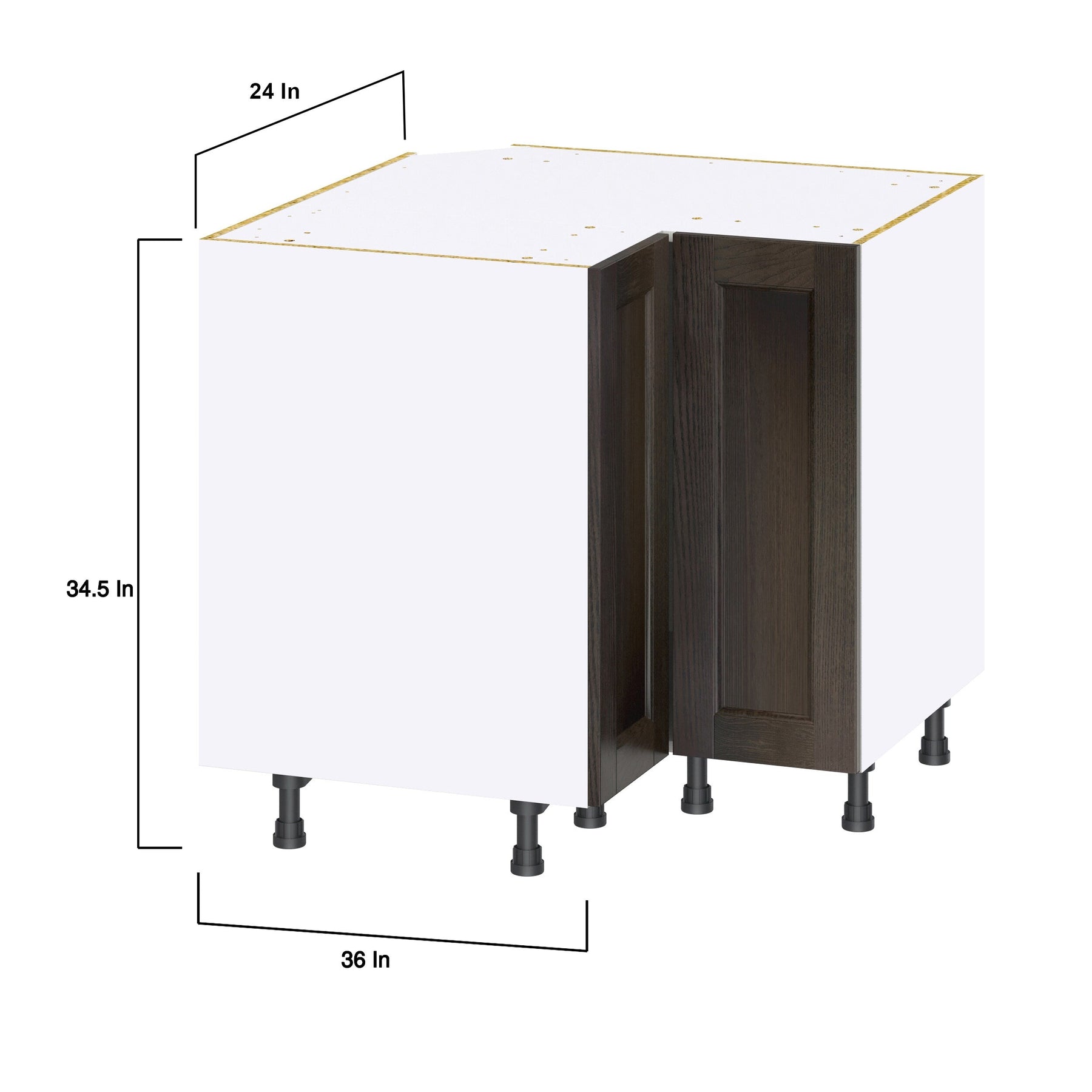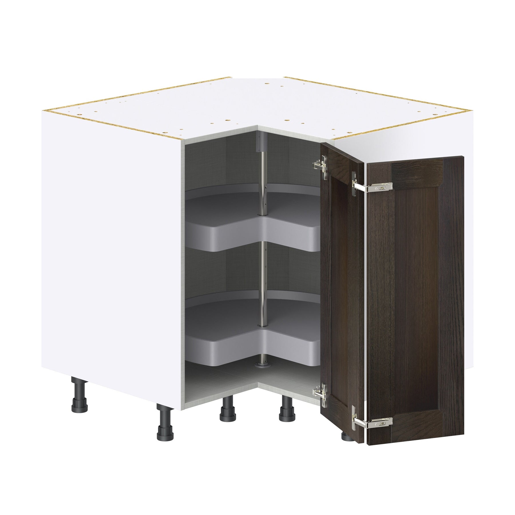 The Hugo&Borg Montclaire Shaker Style Lazy Susan corner cabinet combines traditional design with modern functionality. Fully assembled and ready for installation, this cabinet offers 20% more storage space with its European-style construction and features premium soft-close doors with a solid ash door frame. Its deep smoky wood finish provides a neutral and sophisticated touch to any kitchen.