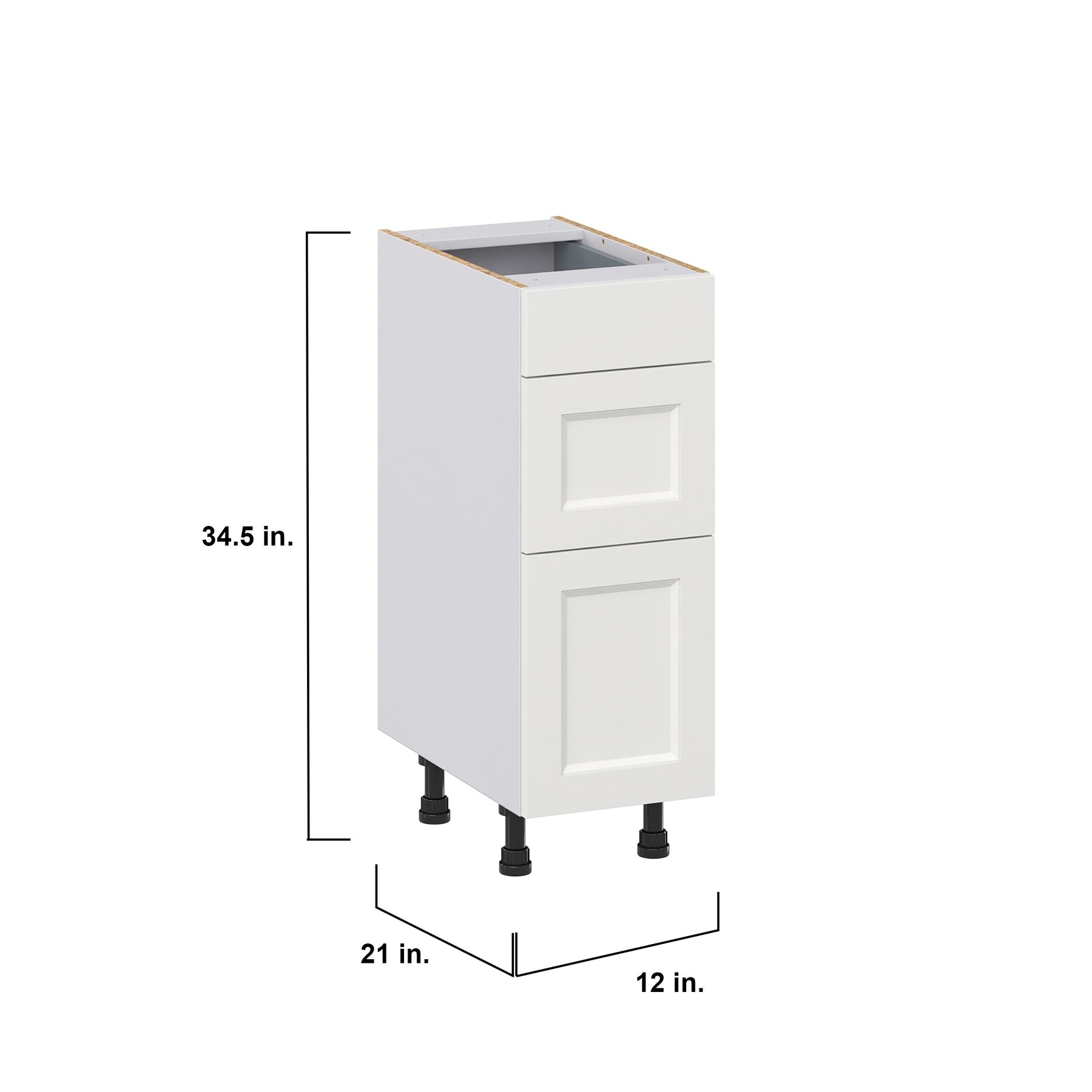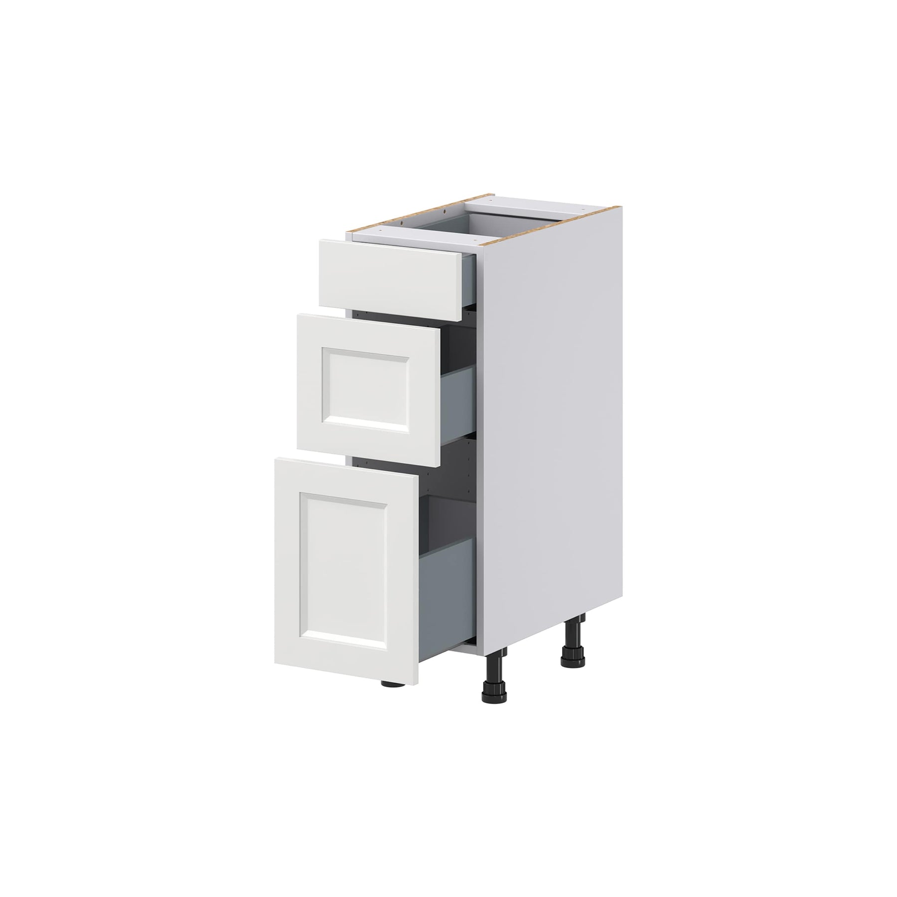Hugo&Borg Riviera 12-in W x 34.5-in H x 21-in D Bright White 3-Drawer Base Fully Assembled Cabinet (Recessed Panel Style)