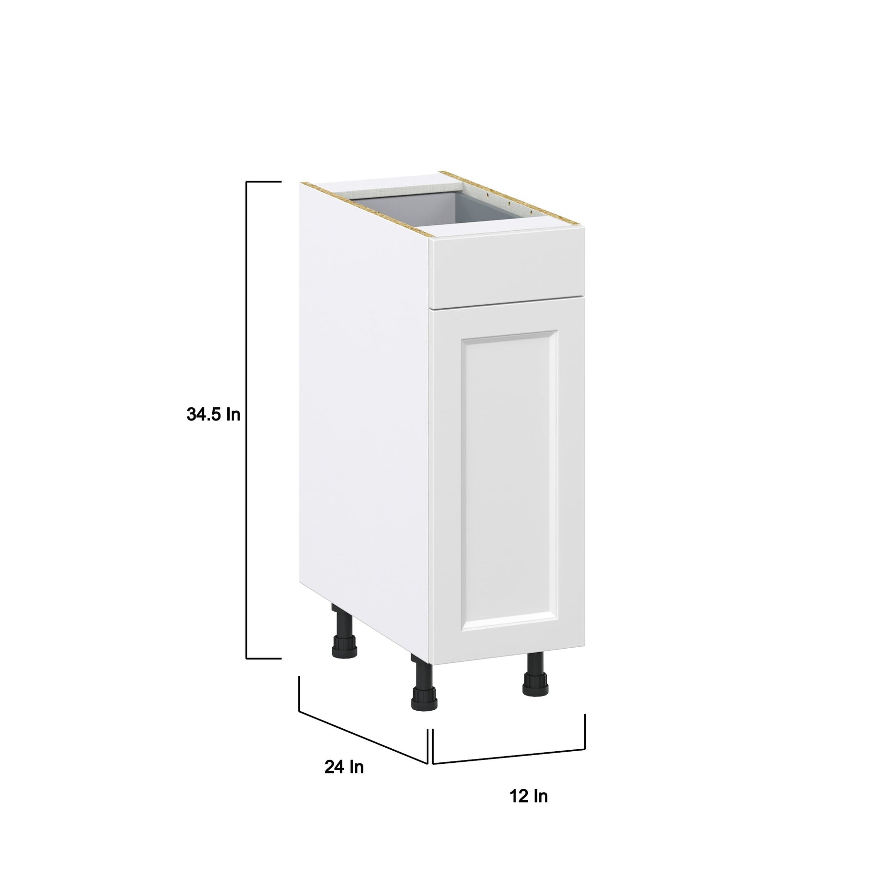 Hugo&Borg Riviera 12-in W x 34.5-in H x 24-in D Bright White 1-Drawer Base Fully Assembled Cabinet (Recessed Panel Shaker Style)
