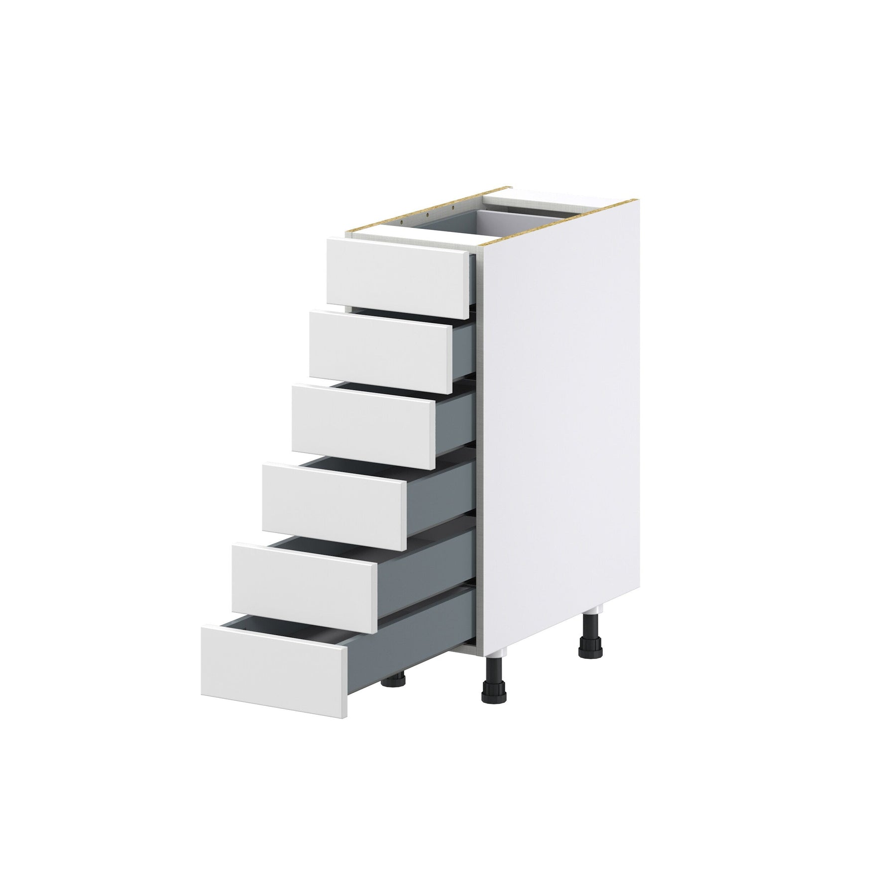 The Hugo&Borg Riviera 6-Drawer Base Cabinet is designed for both functionality and style. With its European-style construction, this cabinet offers 20% more storage and features a sleek recessed panel design. The soft-close drawers and premium, moisture-resistant finish ensure a quiet, durable solution for any kitchen or workspace.